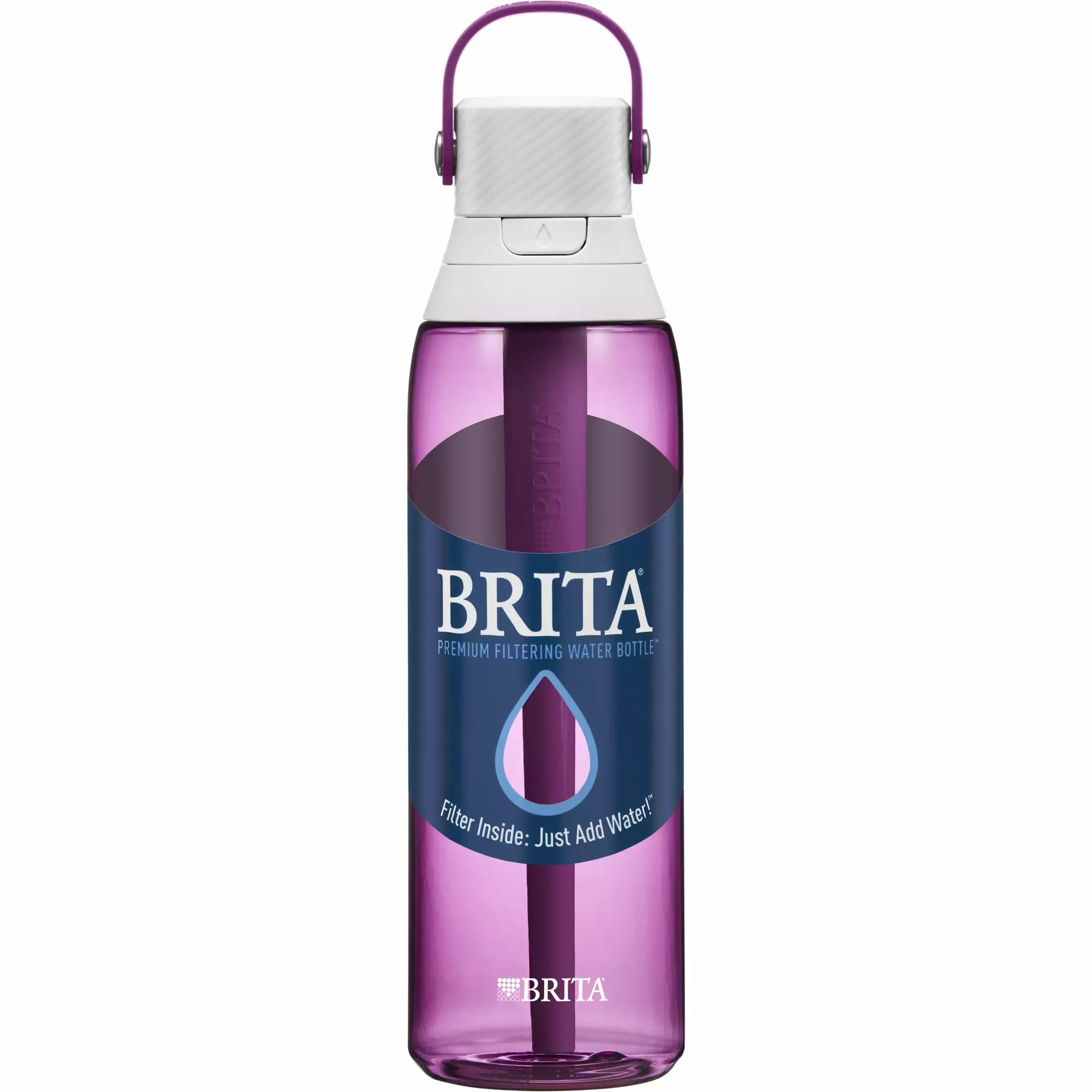 Drink healthier. great-tasting tap water with the BPA-free Brita Hard-Sided Plastic Premium Filtering Water Bottle. This filtered water bottle utilizes an activated carbon block filter to cut the taste and odor of chlorine and reduce particulates in water as you drink. You can replace 300 standard 16.9-oz. single-use plastic water bottles with just one water bottle filter. It’s an easy way to stay hydrated. save money and reduce plastic waste. Created for effortless convenience. this leakproof water filter bottle features an enclosed. easy-sip straw. a built-in carrying loop for grab-and-go portability and a one-handed push-button lid. Enjoy hassle-free hydration anywhere: at home. the office. a sporting event. or at the gym. Brita filtering bottles are easy to clean and dishwasher safe. This water bottle is compatible with Brita water bottle replacement filters. which should be changed every 40 gallons or about every two months. Get great taste. less waste and more savings from Brita.