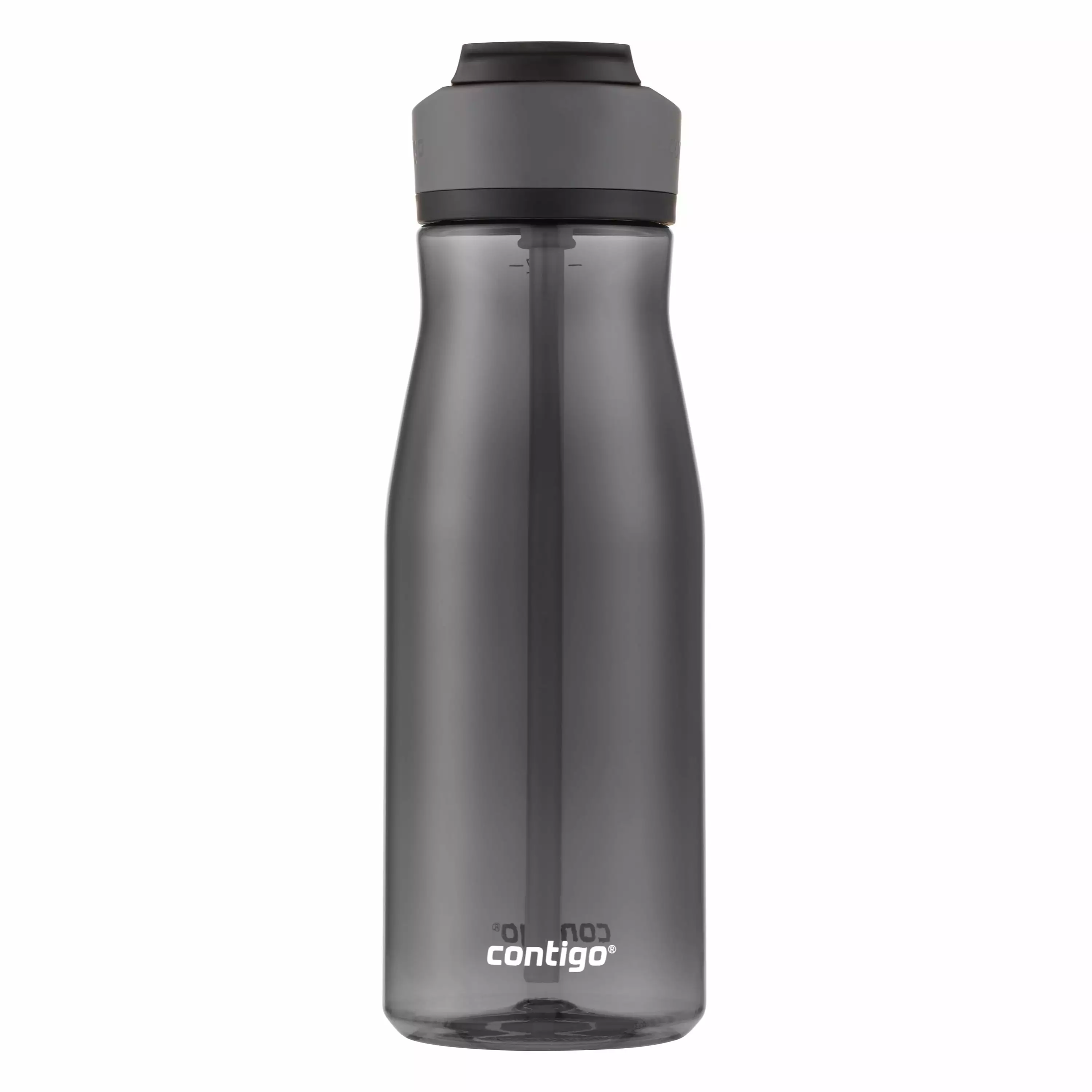 Push. sip. and press your way to better hydration. The Contigo Ashland 2.0 Tritan Water Bottle with AUTOSPOUT Straw Lid Licorice. 24 fl oz. features push-button technology for easy one-handed drinking. The leakproof lid means less mess wherever you go. and the spout cover helps to protect the spout from dirt and grime so you can drink confidently. Carrying it around is easy with the integrated handle that swings up and sets back down to stay out of the way. Sip every last drop with the angled pop-up straw that fits securely into the lid. The lid and 100% BPA-free body is top-rack dishwasher-safe for easy cleanups. Holds 40 fluid ounces.