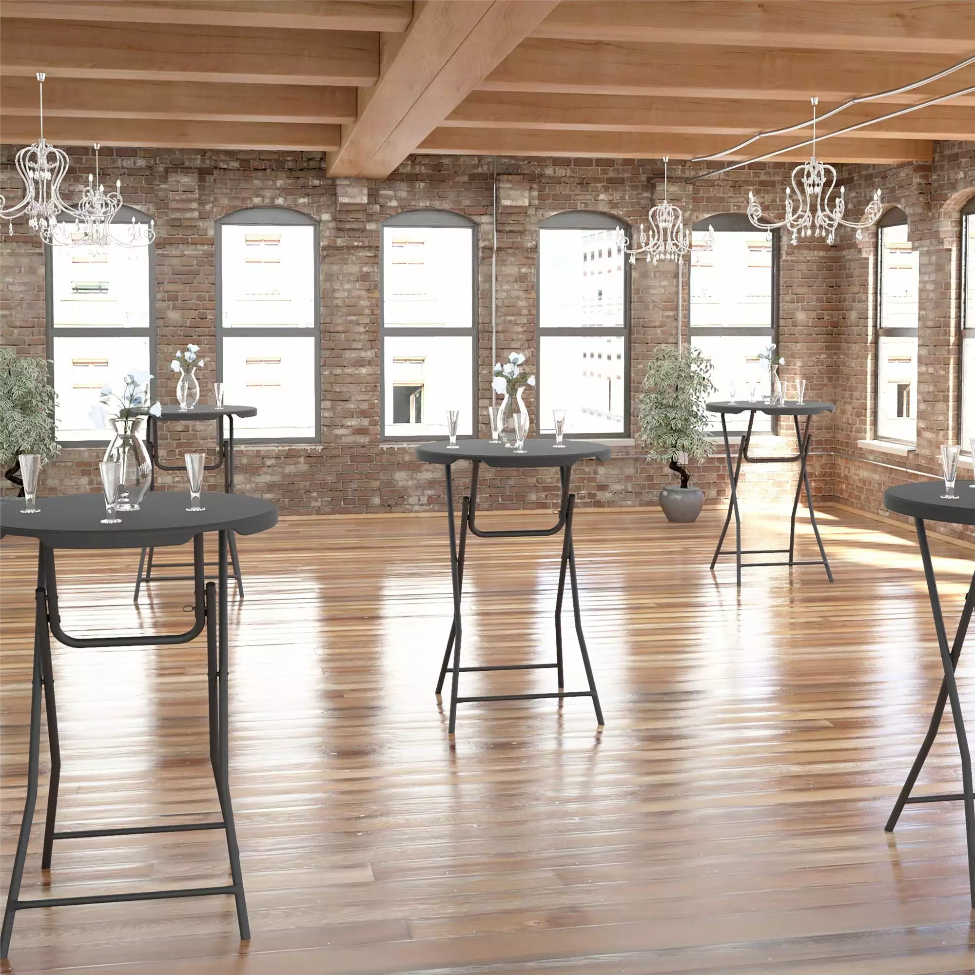 Classic Commercial Cocktail Folding Table is perfect for events such as weddings. cocktail parties. high school proms and homecomings. Its durable construction is molded from HDPE. a premium resin material capable of withstanding all weather elements. for reliable indoor and outdoor use. Large base provides great stability while withstanding a weight capacity of approximately 350 lb. Manual lock on the legs and integrated foot pads ensure no floor is damaged when in use and will never fold under pressure during events. Lightweight design allows you to easily fold the table when it’s time to be taken down.