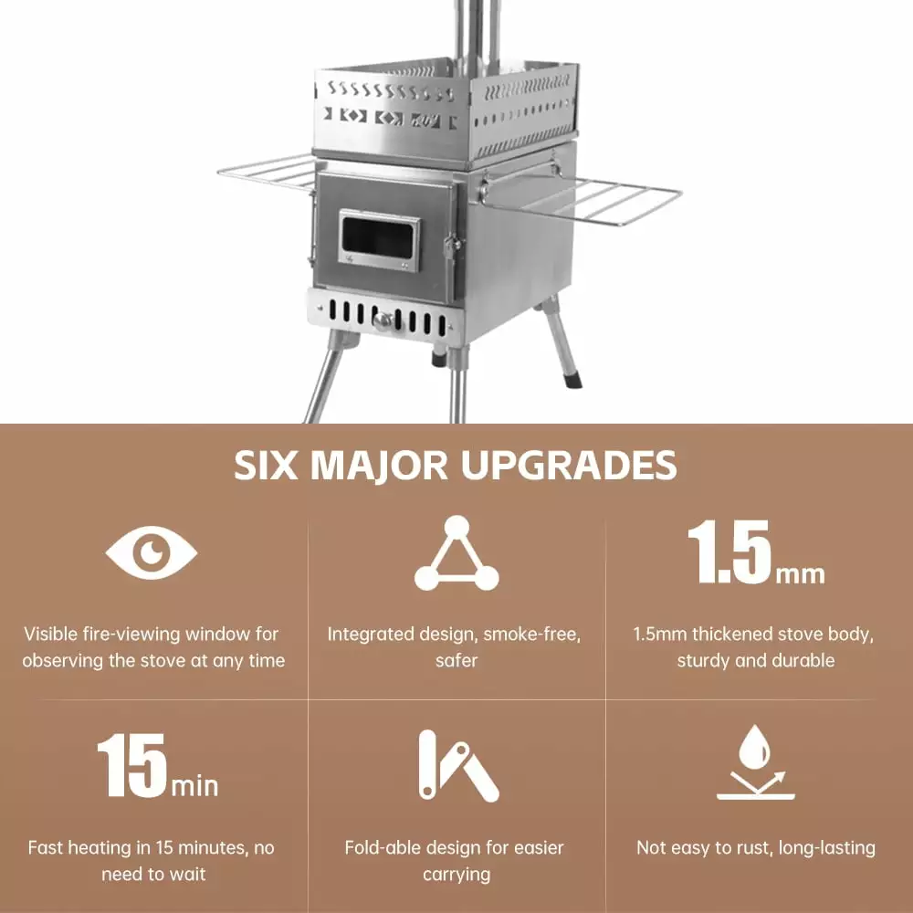 - Fire-viewing window design: Allows you to observe the burning situation inside the stove at any time.