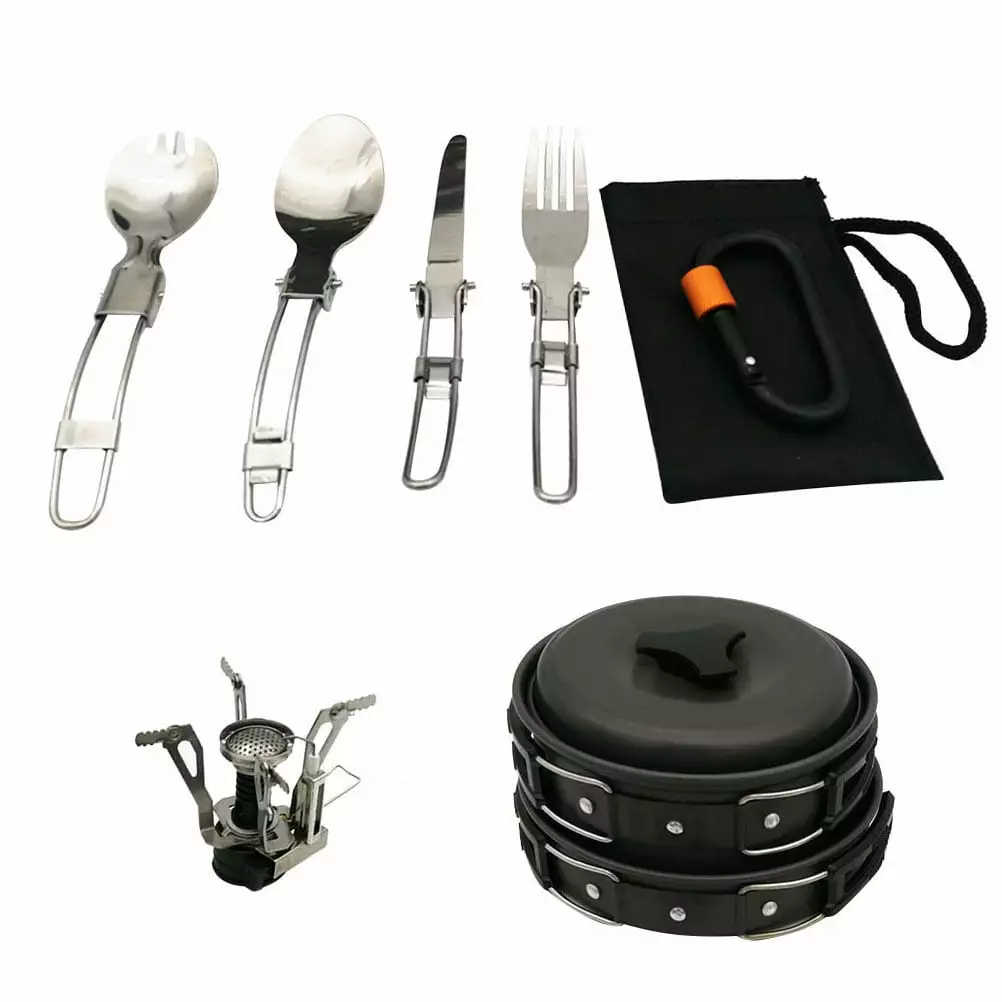 This item is a set of camping pot which is made of high qulity materials for safe and durable long time use. Lightweight and durable Stainless steel perfect for camping backpacking. hiking. picnic and other outdoor activities.