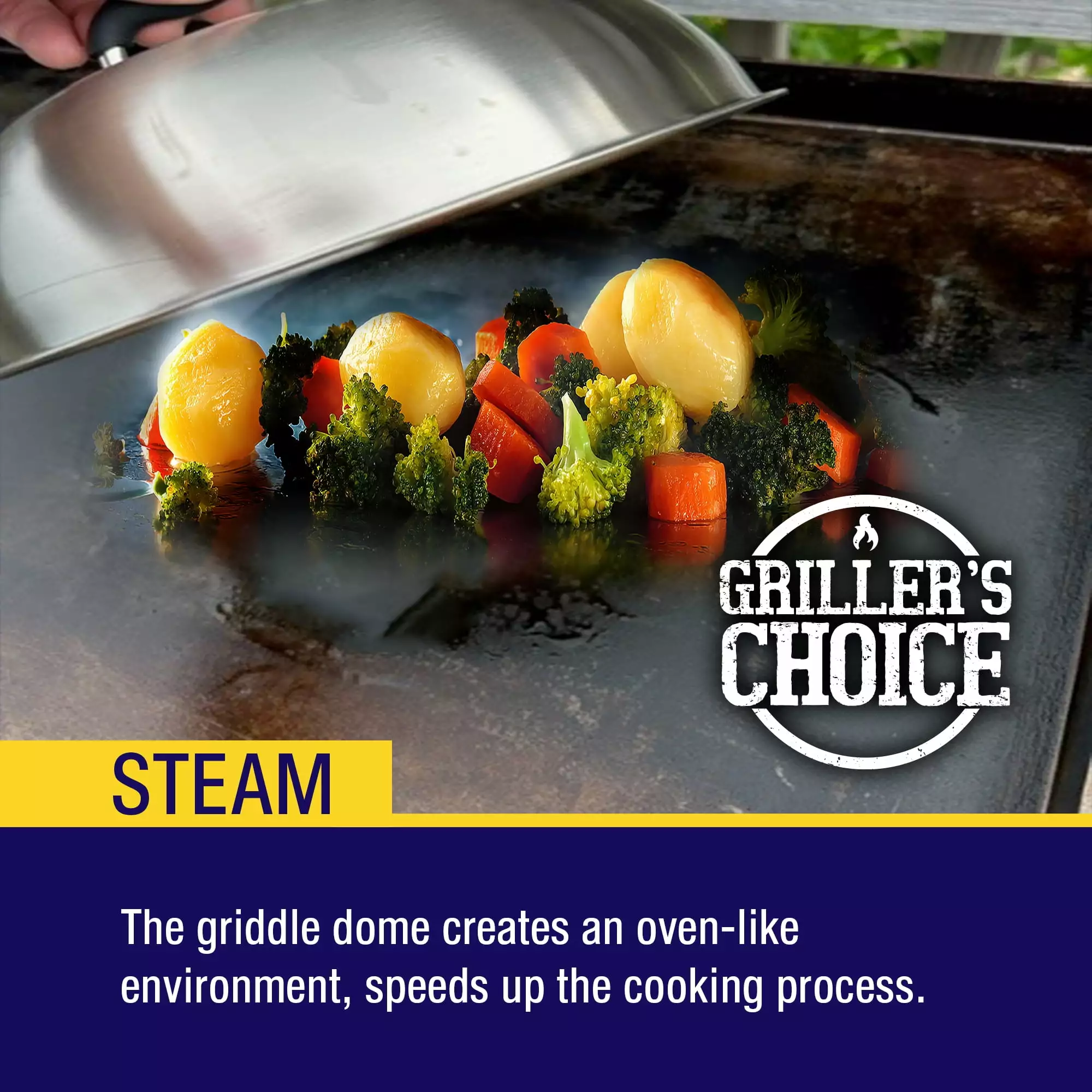 - Steam and Melt: Our blackstone steam cover isn’t just for show. Melt cheese on your burgers or steam veggies right on the grill. This steamer dome is a fantastic addition to your hibachi grill accessories set.