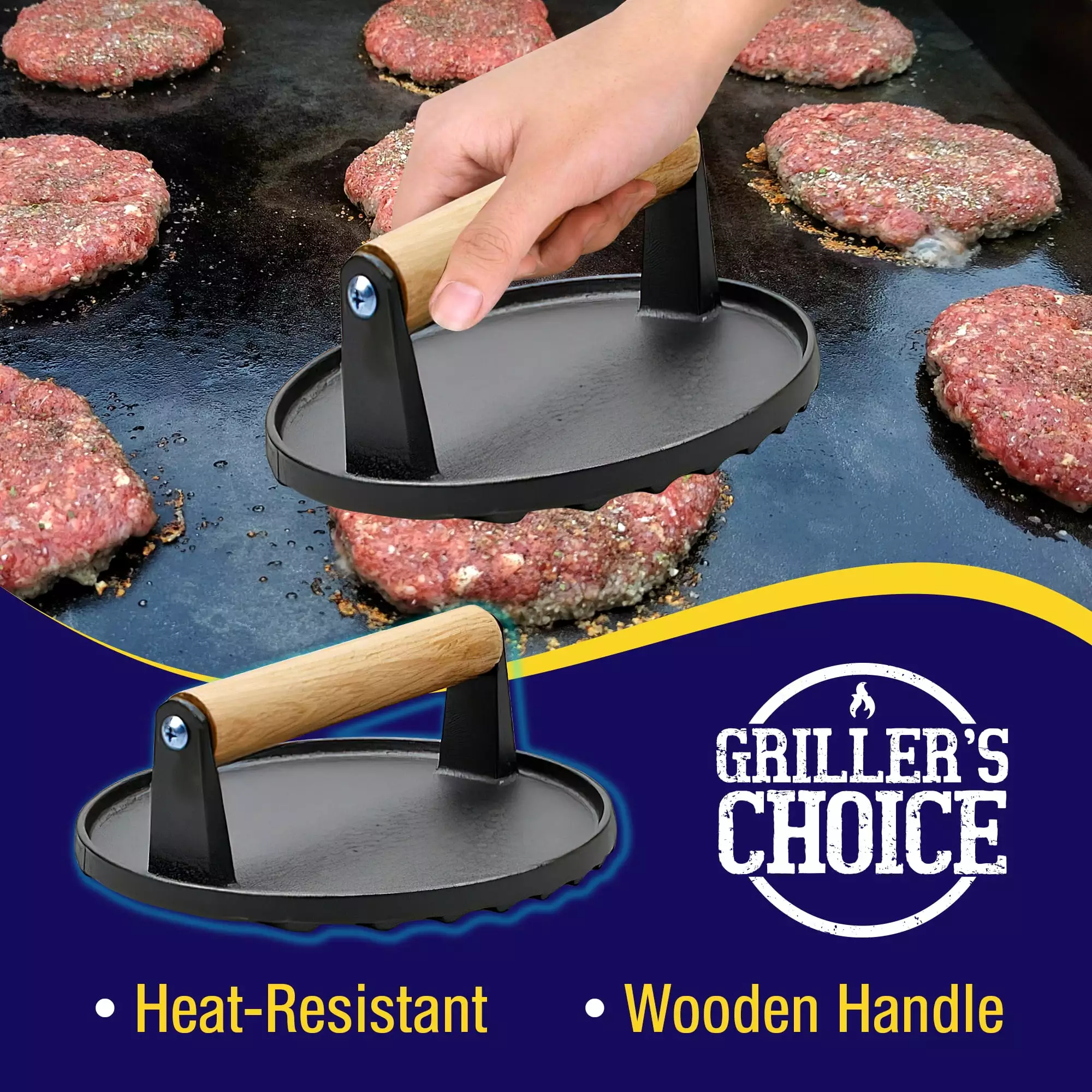 - Durable Cast Iron Press: Introducing the smash burger press kit. the perfect addition to your barbeque griddle arsenal. This cast iron smash burger press is built to last. ensuring you the perfect smashburger every time you grill.
