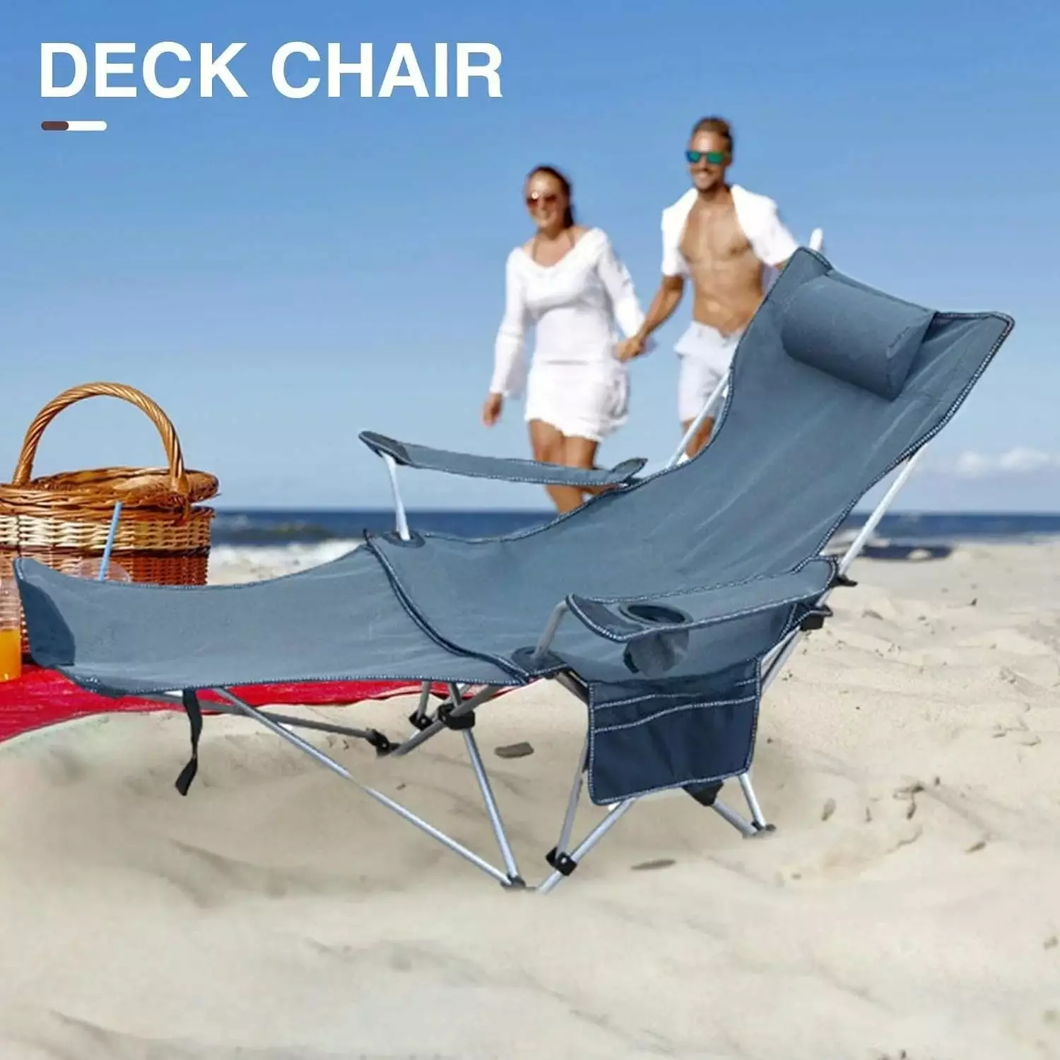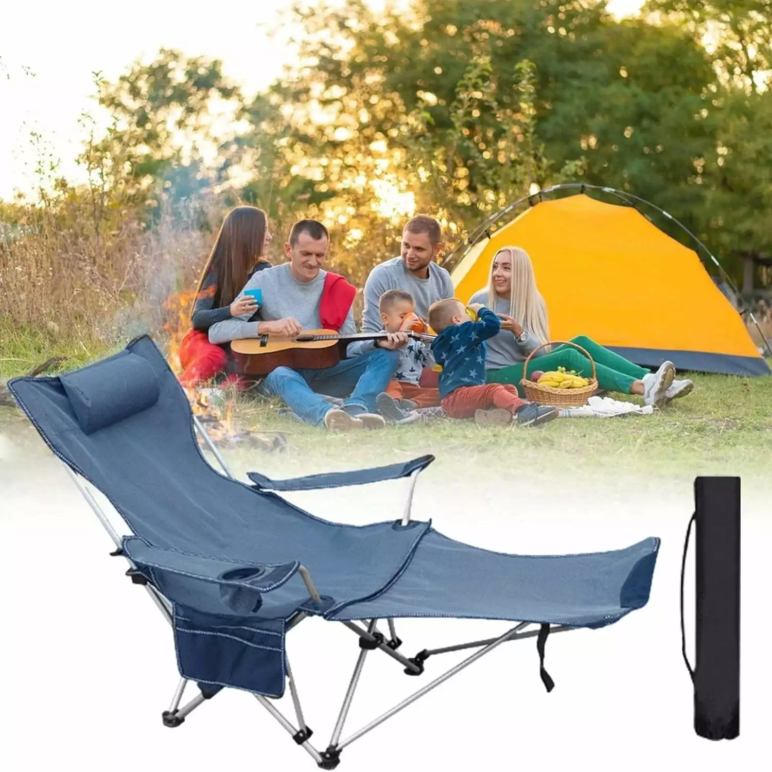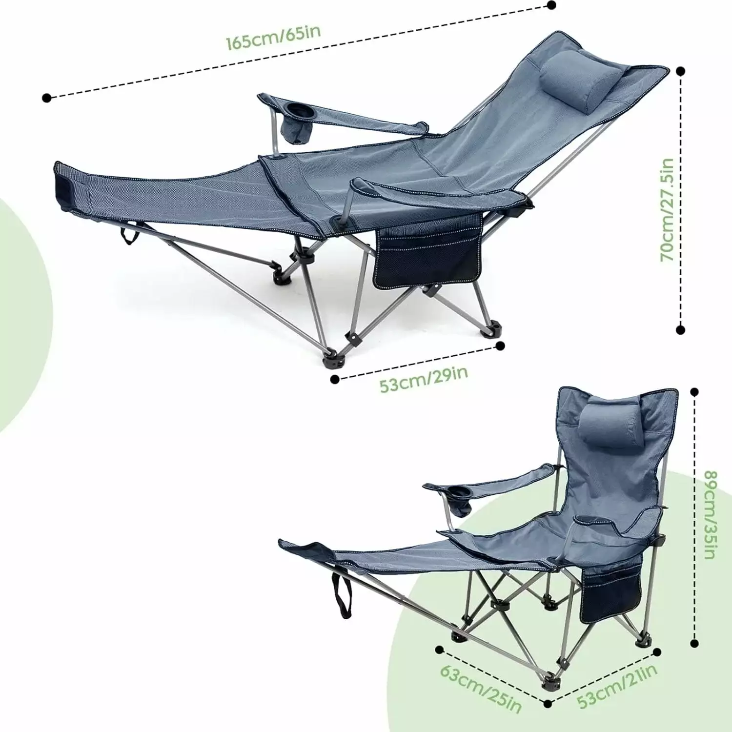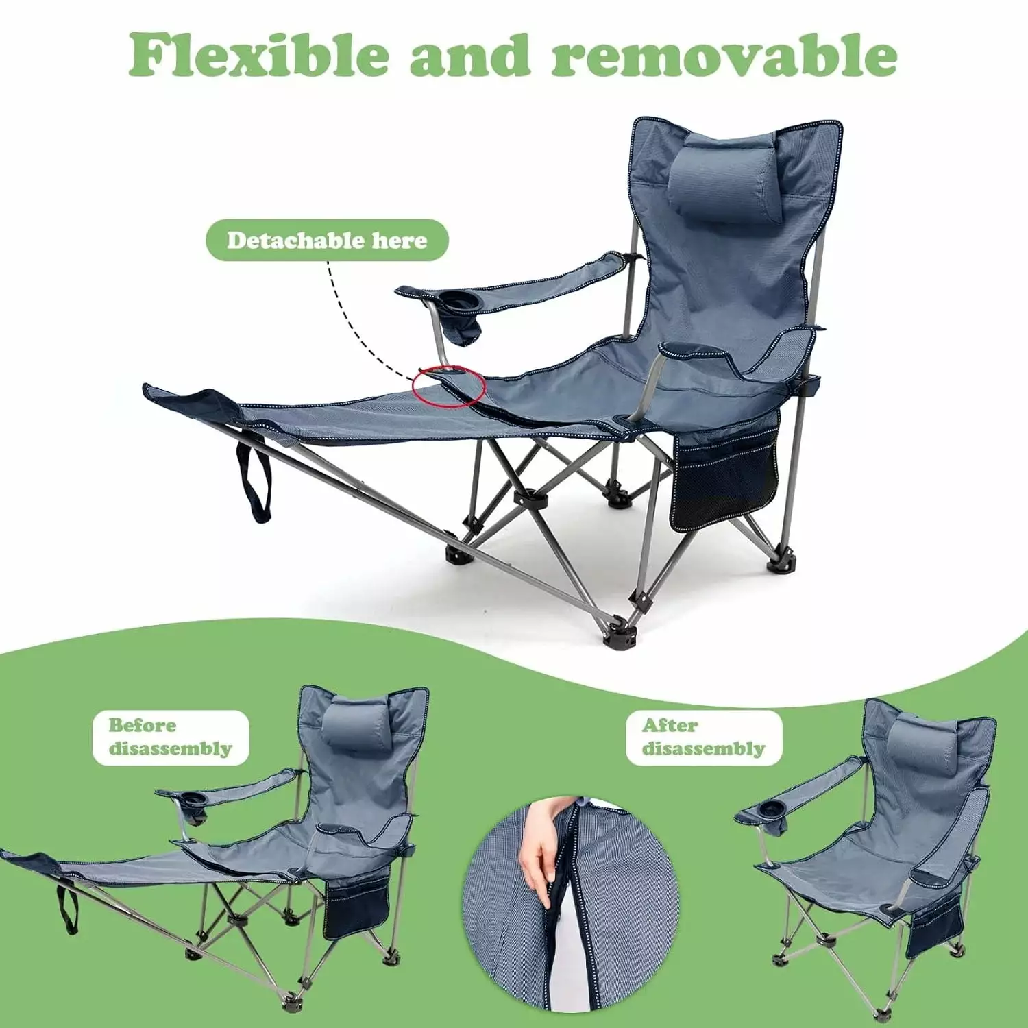 GVDV Folding Camping Chair with Removable Footrest and Adjustable Backrest for Adults. Portable and Lightweight Reclining Lounge Chairs with Pillow. Cup Holder and Side Pocket for Outdoor