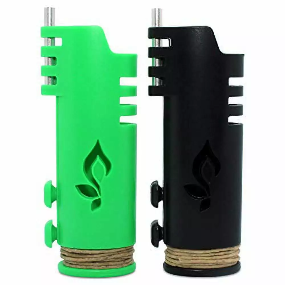 Hemp Wick Lighter 2 Pack Wrapper. Includes 8FT Hemp Wick by Hemplights USA (Black/Lime)None
