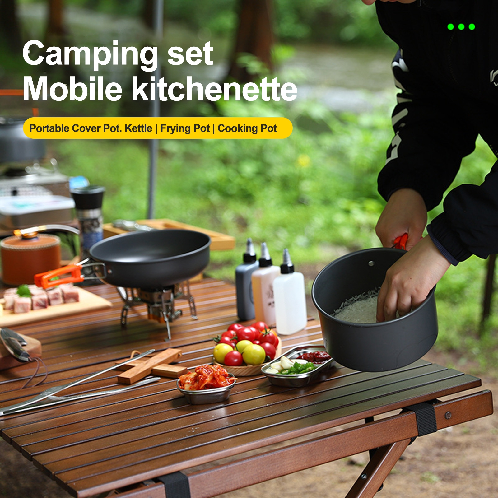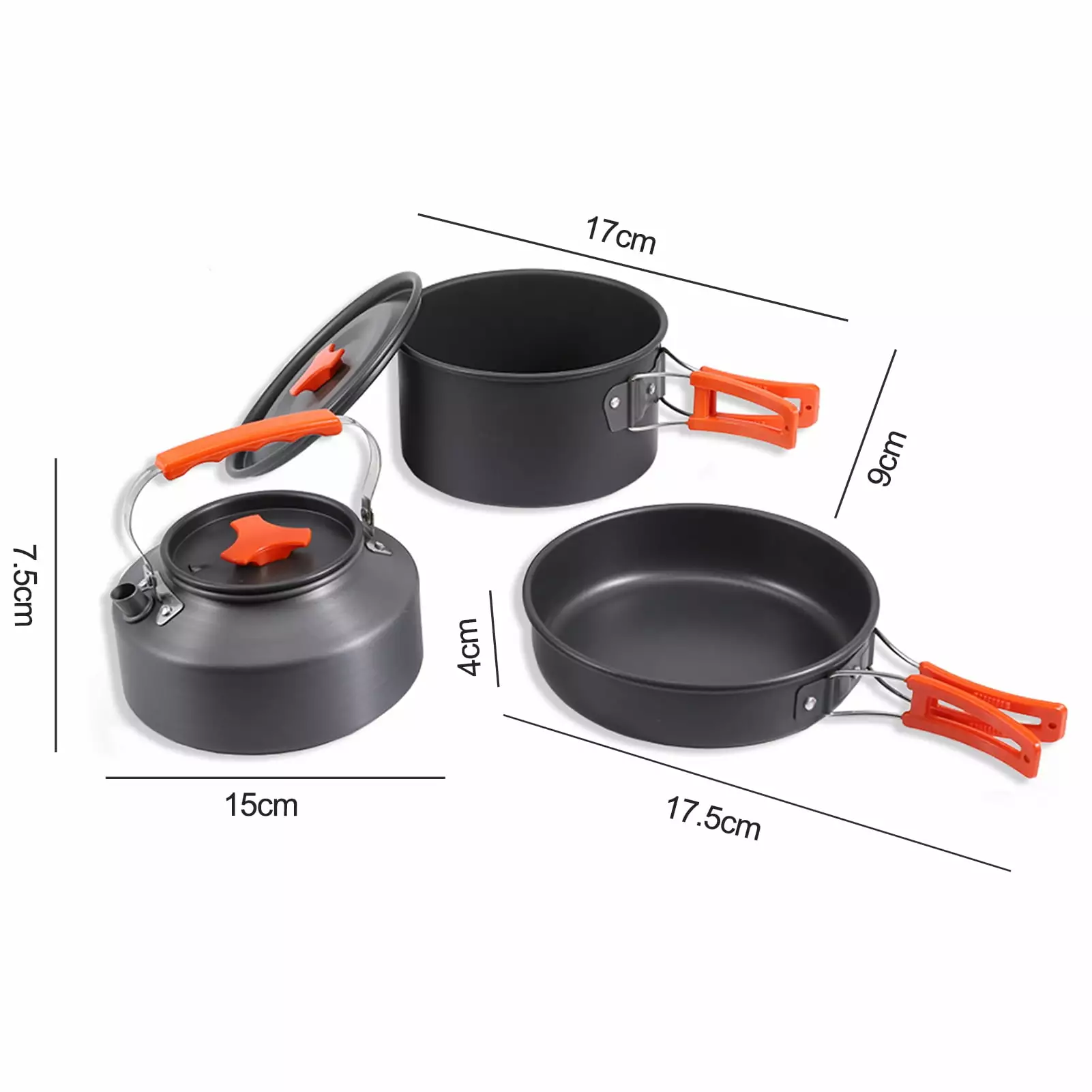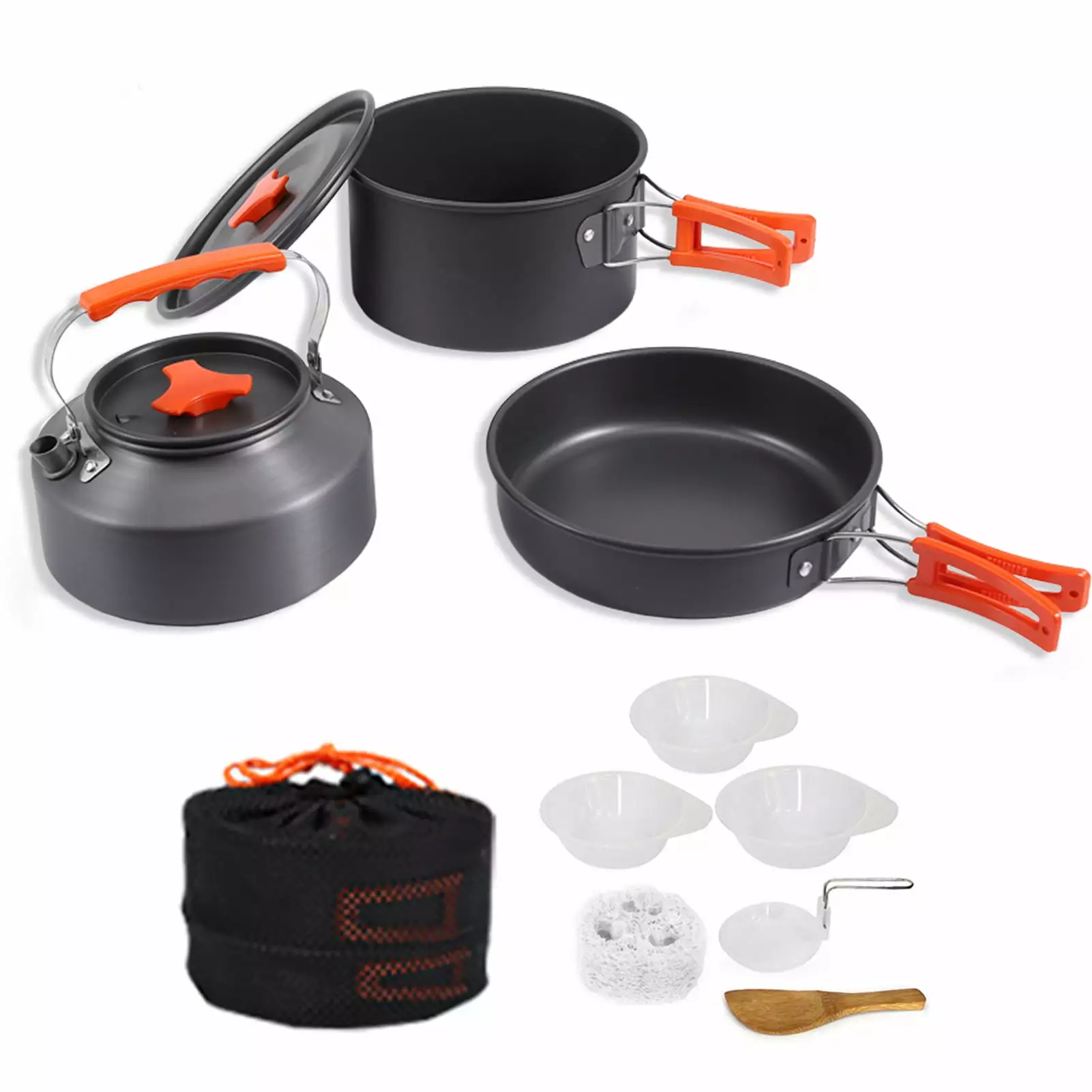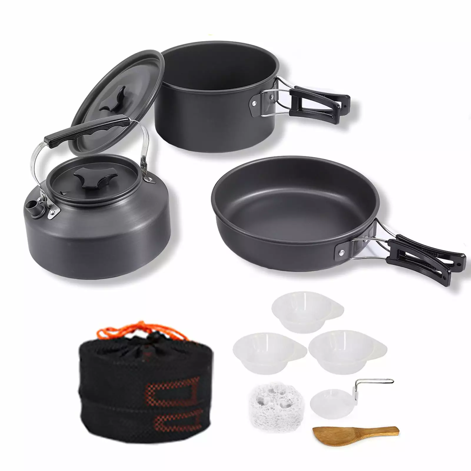 Introducing the camping pot set. the perfect companion for all your outdoor cooking adventures. This set features an insulated anti-slip handle and a wrap-around foldable plastic handle. providing both anti-slip and anti-scalding functions for safe and convenient use. The hanging design handle makes it easy to store and carry. while the lightweight and portable design ensures hassle-free transportation.