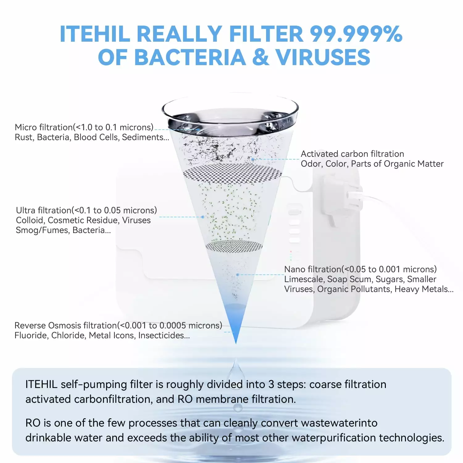 ITEHIL Camping RO Water Purifier for Hiking Survival(7.13 Gal). Removes 99.9999% of Poly Vinyl Chloride(PVC)