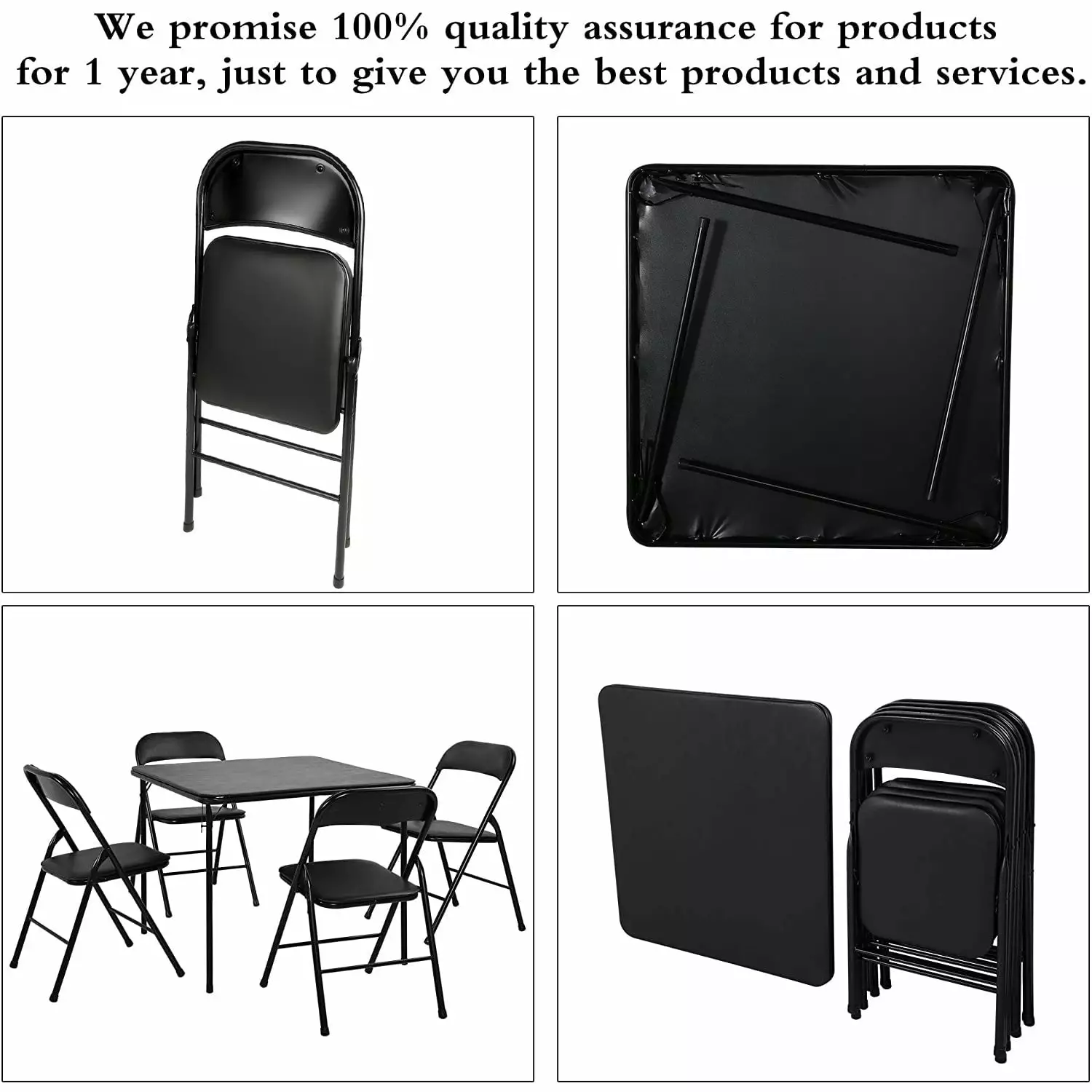 Javlergo 5-Piece Folding Table and Chair Set. Square Folding Card Table and 4 Folding Chair for Indoor and Outdoor. Black