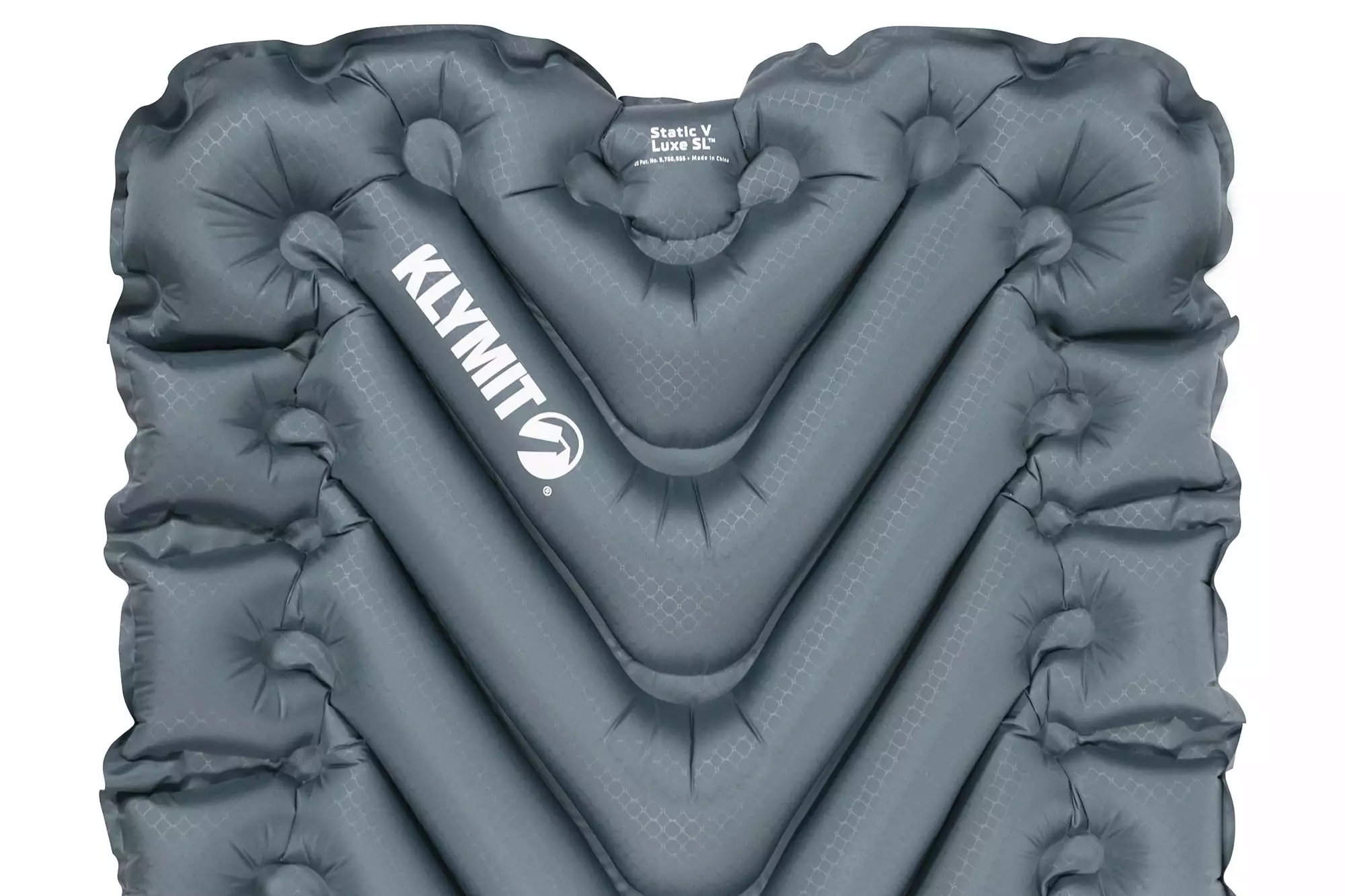 The Klymit Static V Luxe SL Outdoor Camping Sleeping Pad. 78x27in. Blue is a lightweight. luxury sleeping pad. The sleeping pad is the thickest pad in the Static Series line at 3.5. It’s the perfect balance of weight. width. and length in a luxury size. Slightly slimmer than the Static V Luxe. weight is trimmed by using a lightweight fabric and a slight taper at the bottom third of the pad. The exclusive V-chamber design conforms to the shape of your body while maintaining ample. lofted air pockets. The result: side. back. and stomach sleepers can all rest comfortably on a generous bed of air.