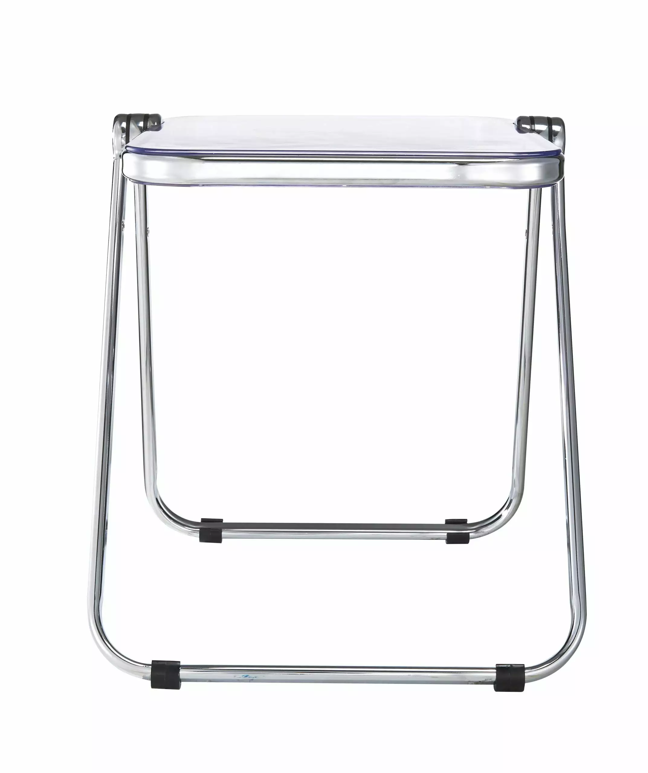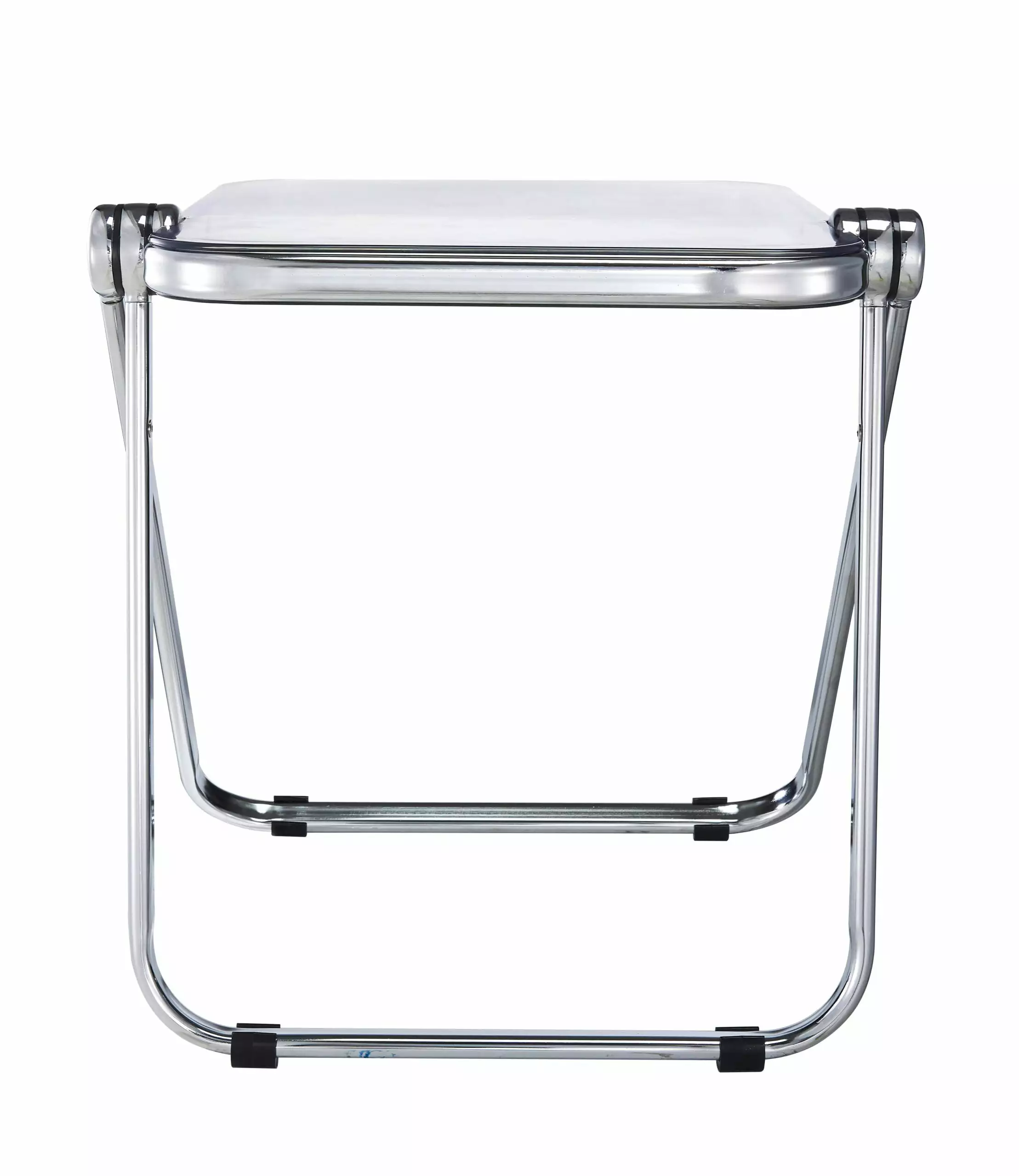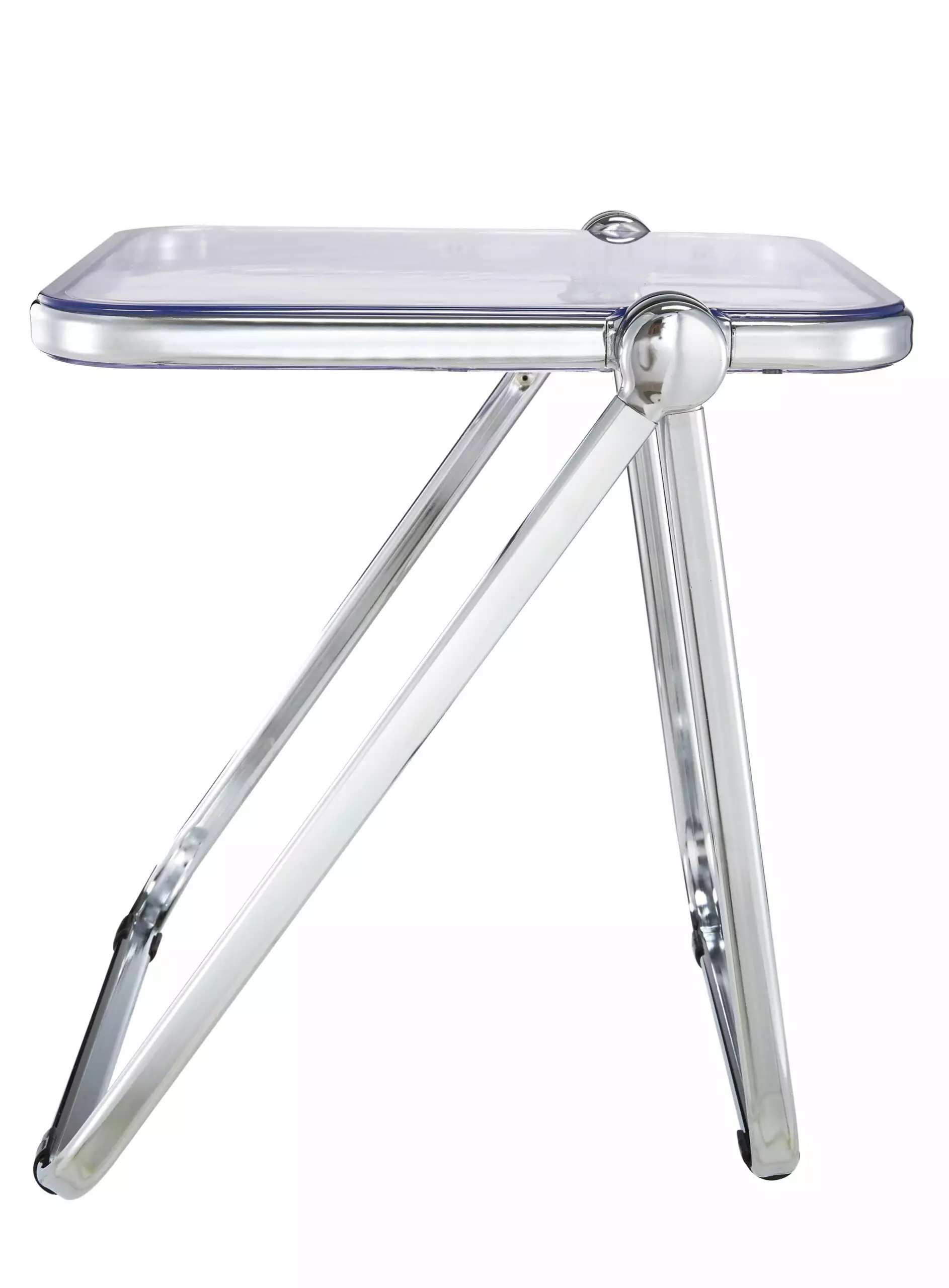 LeisureMod Lawrence Mid-Century Modern Rectangular Folding Side Table in Chrome Finish with Plastic Tabletop and Aluminum Frame for Living Room and Bedroom. Clear