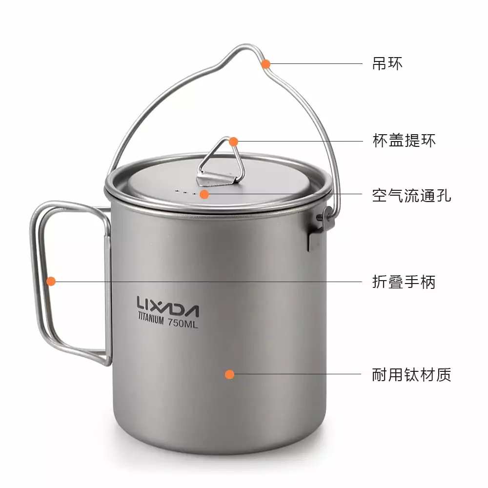 Lixada Titanium cup kit.Lid Collapsible Handle With Lid Collapsible Set 750ml Pot 750ml Pot 350ml Cup With Lid 350ml Water Cup Pieces Set 750ml Collapsible Handle Spork Water Cup With Pot 350ml Water