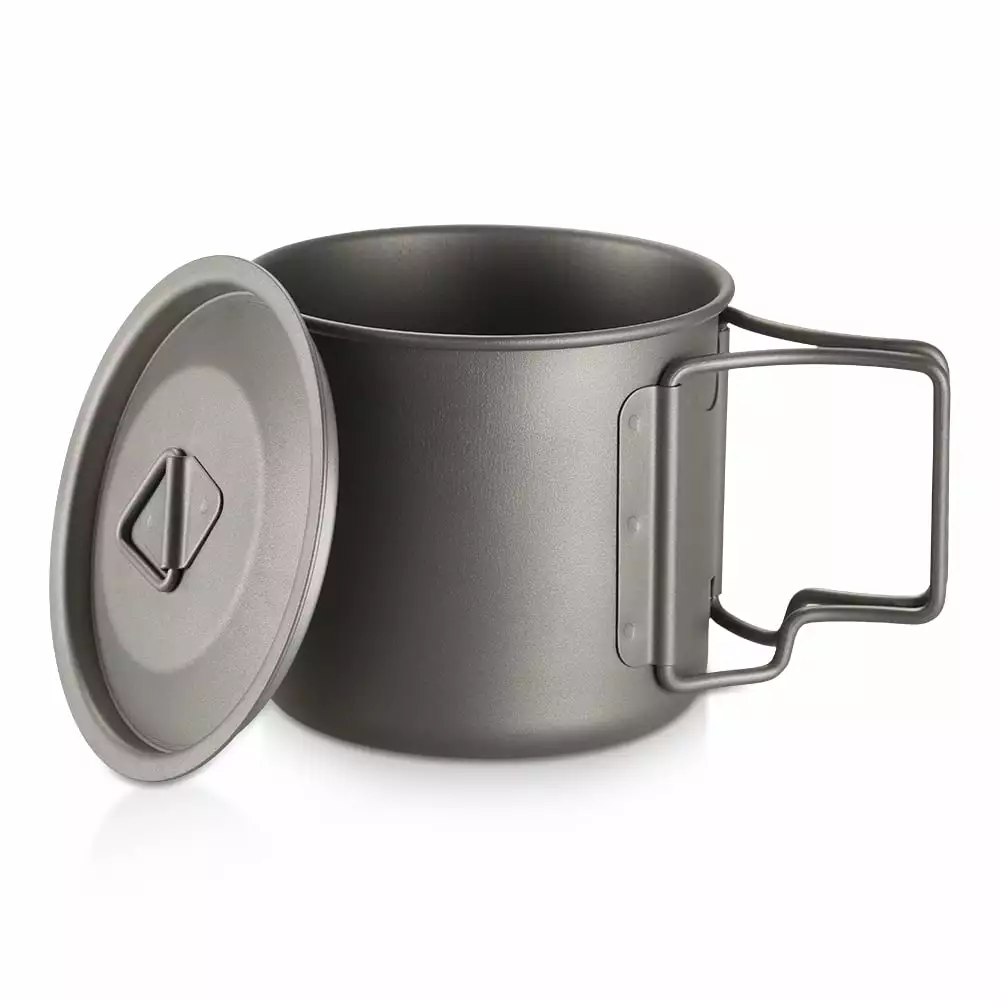 - 3 Pieces Set: Full titanium set includes a 750ml pot. 350ml cup and a folding spork. great for camping. hiking. backpacking. outdoor adventure and survival.