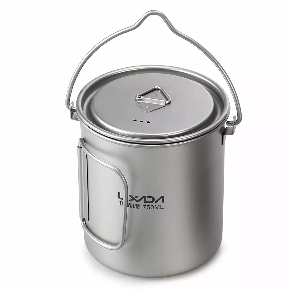 Lixada Lightweight Titanium 3 Pieces Set Titanium 750ml Pot 350ml Water Cup Mug with Lid Collapsible Handle Folding Spork for Outdoor Camping Hiking Backpacking: With a lid to heat loss. Round edges for easy cleaning and improved heating efficiency.Full set includes a 750ml pot. 350ml cup and a folding spork. great for camping. hiking. backpacking. adventure and survival.Lightweight construction is corrosion-resistant and lasts for years. It imparts no taste and odor on food or beverage.Collapsible handles for convenient use and storage. Movable bar on the spork to lock its handle open.Each part is well packed in a storage sack for compact storage. convenient to carry wherever you go.