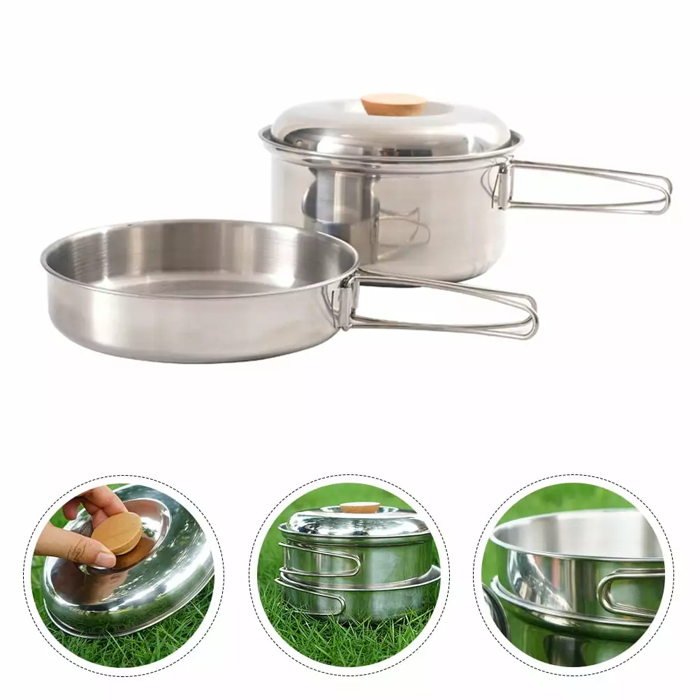 NUOLUX Camping Outdoor Pan Set Pot Cooking Campfire Cookware Gear Cook Picnic Sets Hiking Utensils Backpacking Supplies