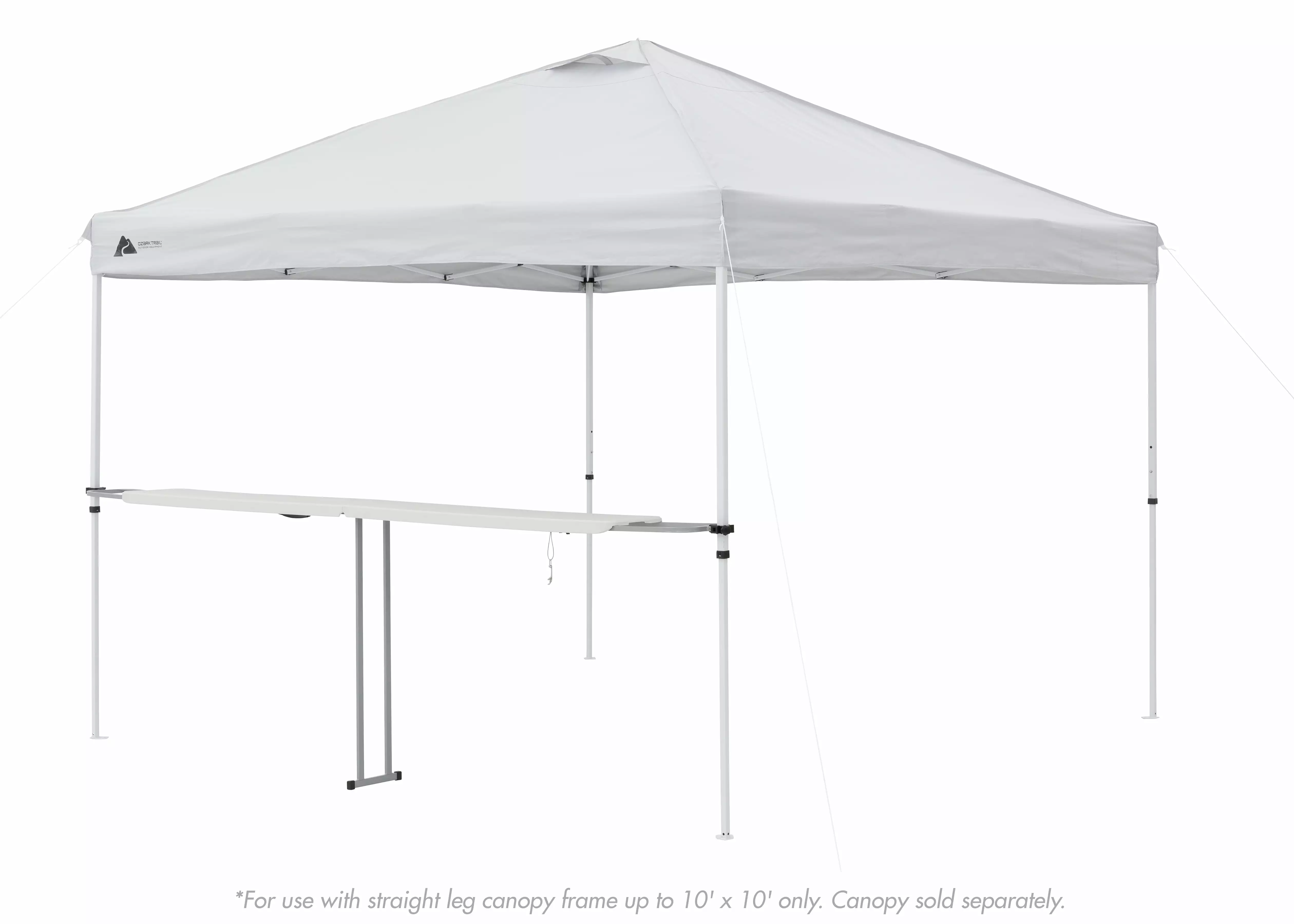 Add further comfort and convenience to your tailgate. campout. or backyard party with the Ozark Trail 8-Foot Extendable Tailgate Table. White. With the extendable arms. this tailgate table will fit most straight leg canopy frames up to 10 ft x 10 ft. It includes a bottle opener and provides a suitable space for serving snacks and resting drinks for your next tailgate or family picnic. When assembled. this table stands at a height of 3.25 feet tall. The tabletop measures 12 inches deep and spans a length of 8 feet long. When the arms are fully extended. it measures 10 feet in length allowing it to fit most 10′ x 10′ straight leg canopies (canopy sold separately). Setup is designed to be quick and easy with the bi-fold design. This Ozark Trail extendable tailgate table folds up for space-saving storage between uses and has a convenient carry handle for easy transportation. The Ozark Trail 8-Foot Extendable Tailgate Table. White is the perfect upgrade for your next party. tailgate. or outdoor adventure.
