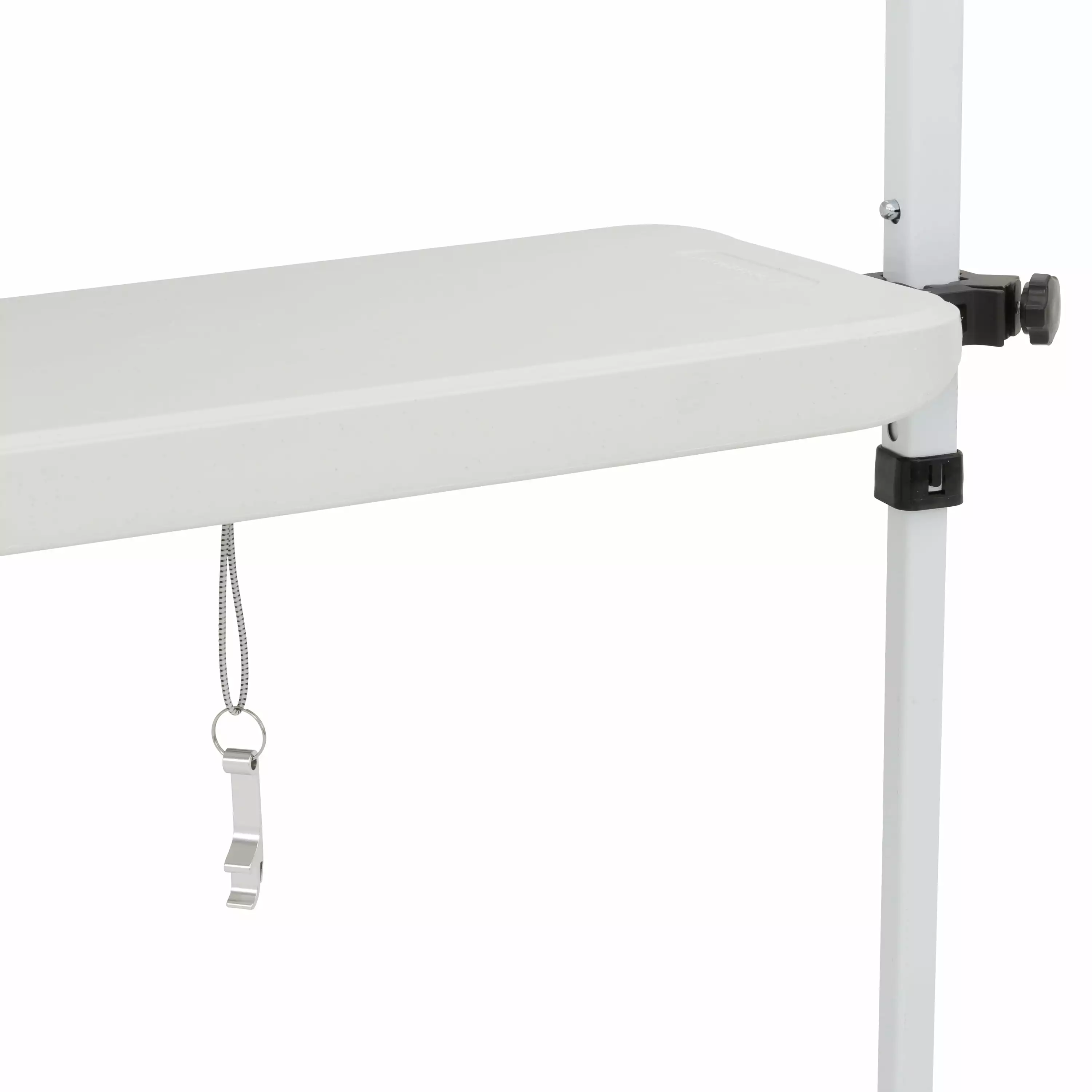 - Adjustable clamps secure to multiple leg widths
