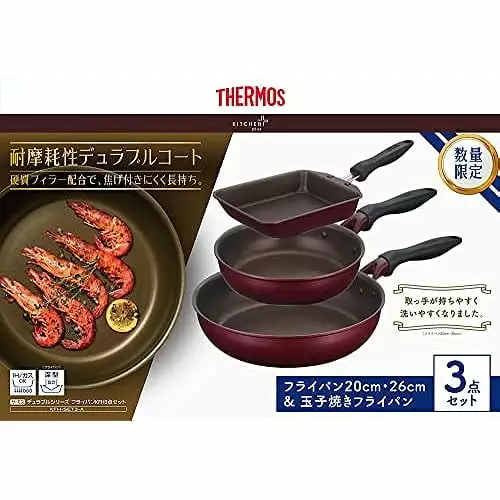 Set contents: Egg frying pan (KFH-013E R) x 1. frying pan 20 cm (KFH-020 R) x 1. frying pan 26 cm (KFH-026 R) x 1;The standard model of the thermos frying pan series because it is a deep type;Gas fire / IH compatible (Please do not fry food on IH *Please do not fry food with all heat sources for the 20cm size);Surface processing: Fluororesin coating processing / Outer surface: Baked coating (excluding bottom);Country of Origin: China Please note that some of the models are made exclusively for Japanese market. hence the specifications and interface language is all in Japanese and cannot be changed to a different language. Also the voltage is adopted for Japanese standard ~ 100V ## About us want.ip Inc (a group company of Yahoo Japan). the leading cross-border e-retailer of all kinds of Japan products. We source all the products from official distributors or manufactures] ## Overseas Shipping Information As this is an overseas delivery product. it may take up to 2~5 business days to ship out. However. there may be a slight delay depending on the local delivery status and customs procedures. ## Warranty Since this product is manufactured for Japanese market. warranty is not supported in your country. ## Voltage For electronic equipment. it is recommended to use a transformer just in case. This is because electronic equipment for Japan is designed to be used at 100V. (Some products are globally compatible.)