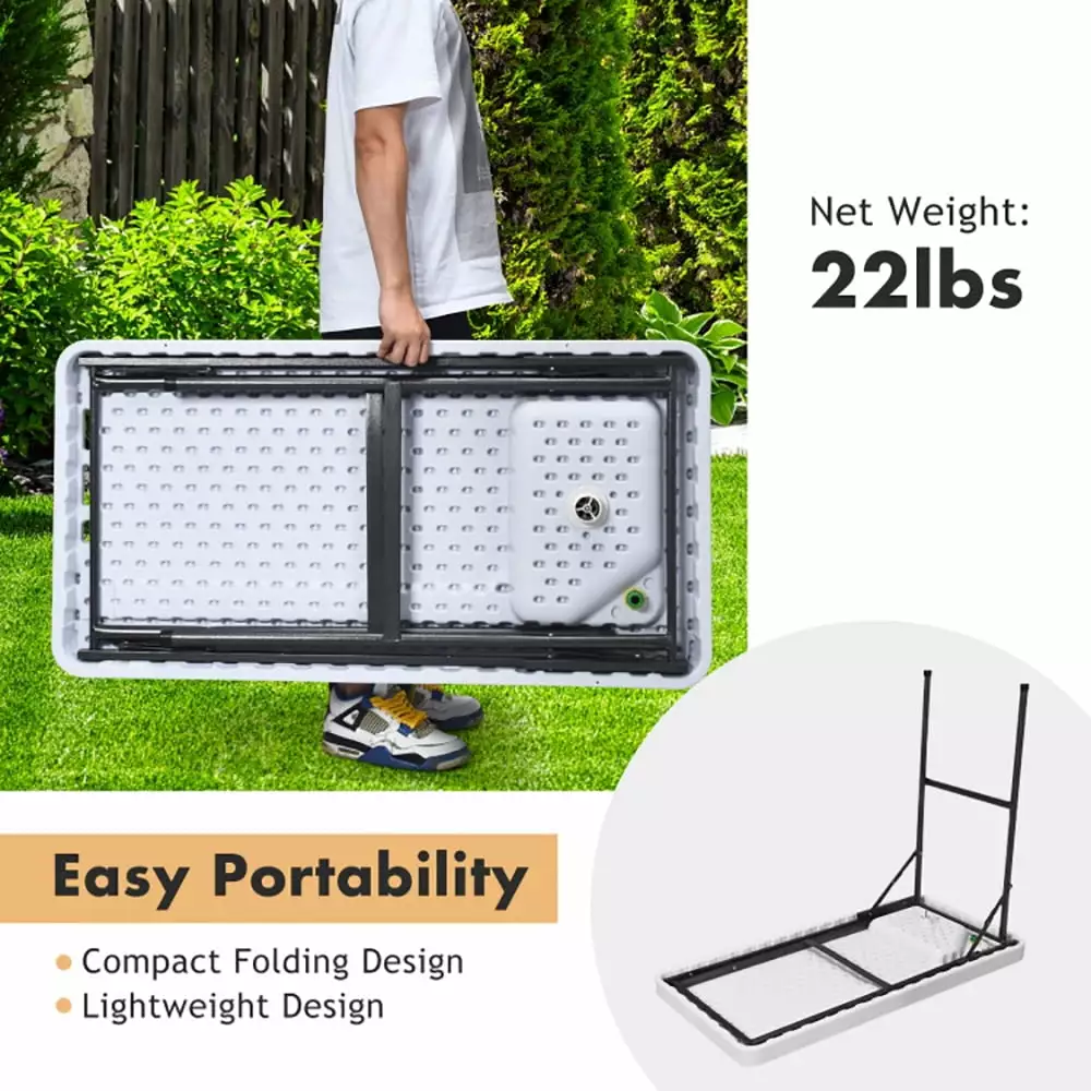 Resenkos Folding Cleaning Sink Faucet Cutting Camping Table with Sprayer. Folding Picnic Table for Patio Pool Park Outdoor