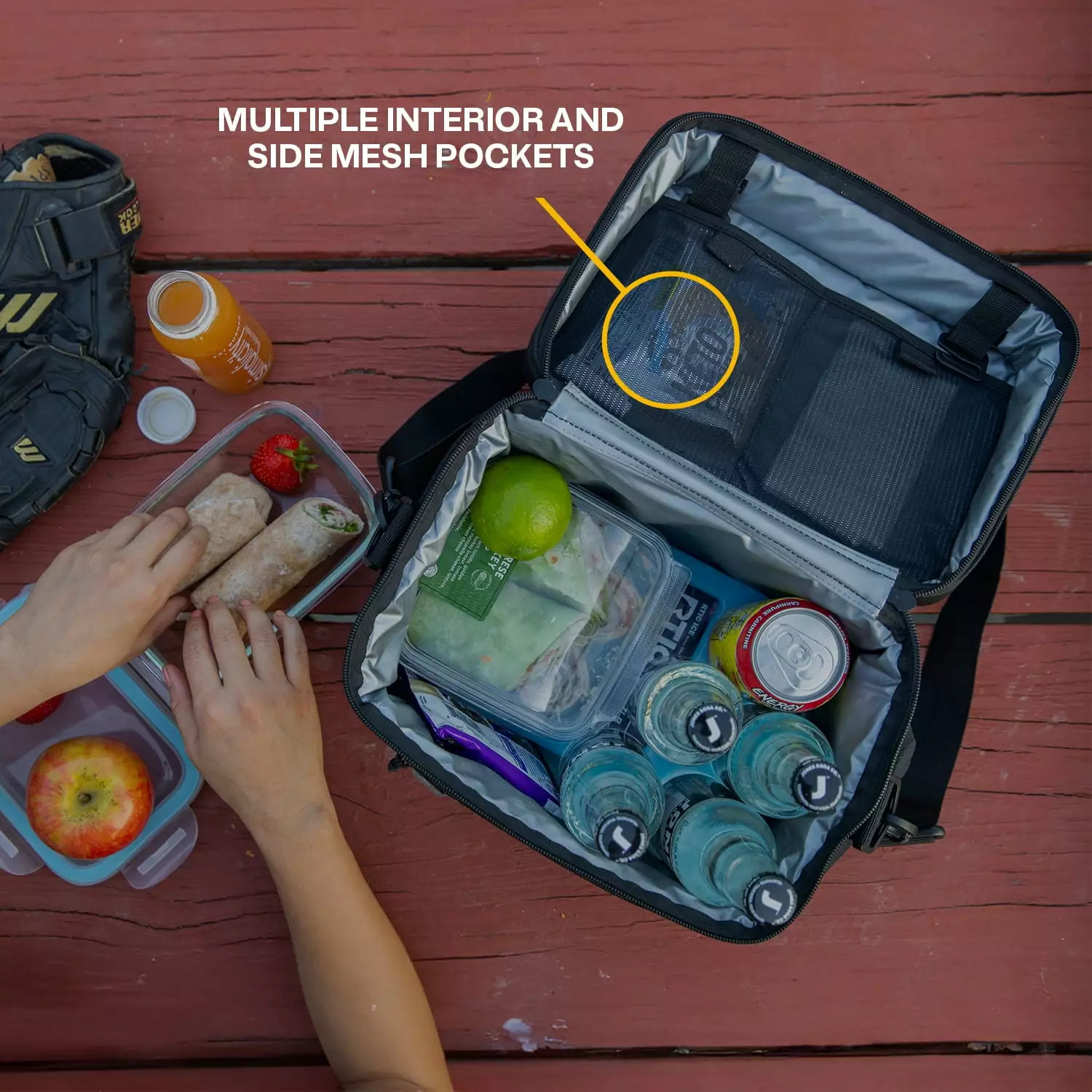 - Fully insulated to lock in the cold for up to 24 hours when using block or gel ice packs.