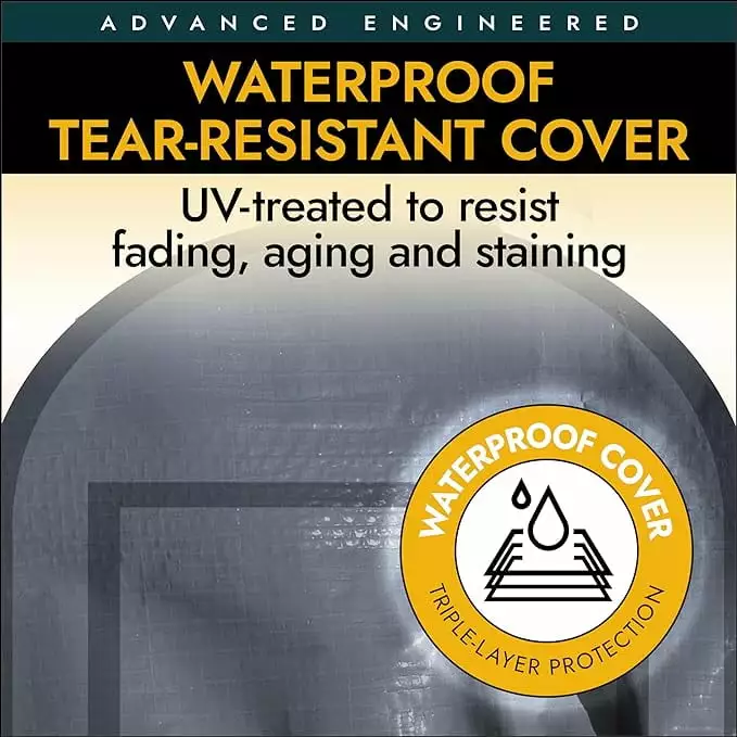 - COMPLETE KIT INCLUDES Fitted one piece cover. solid rear panel and double zippered front door.