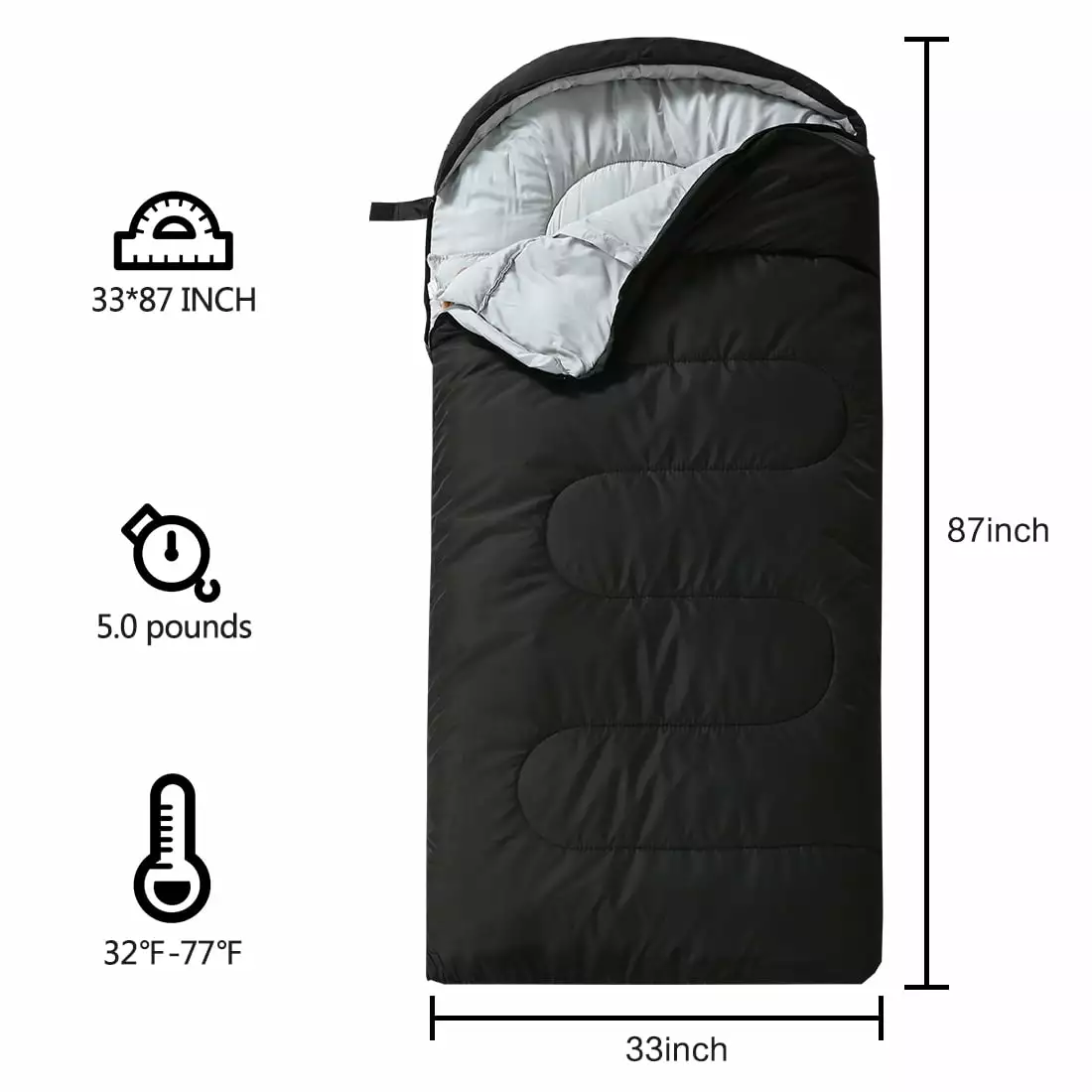 Filling Material: 400 GSM; Temperature Rating: 0-25 ?? / 32-77 ?H; Measures: 87 x 33 in; Weight: 5 pounds.