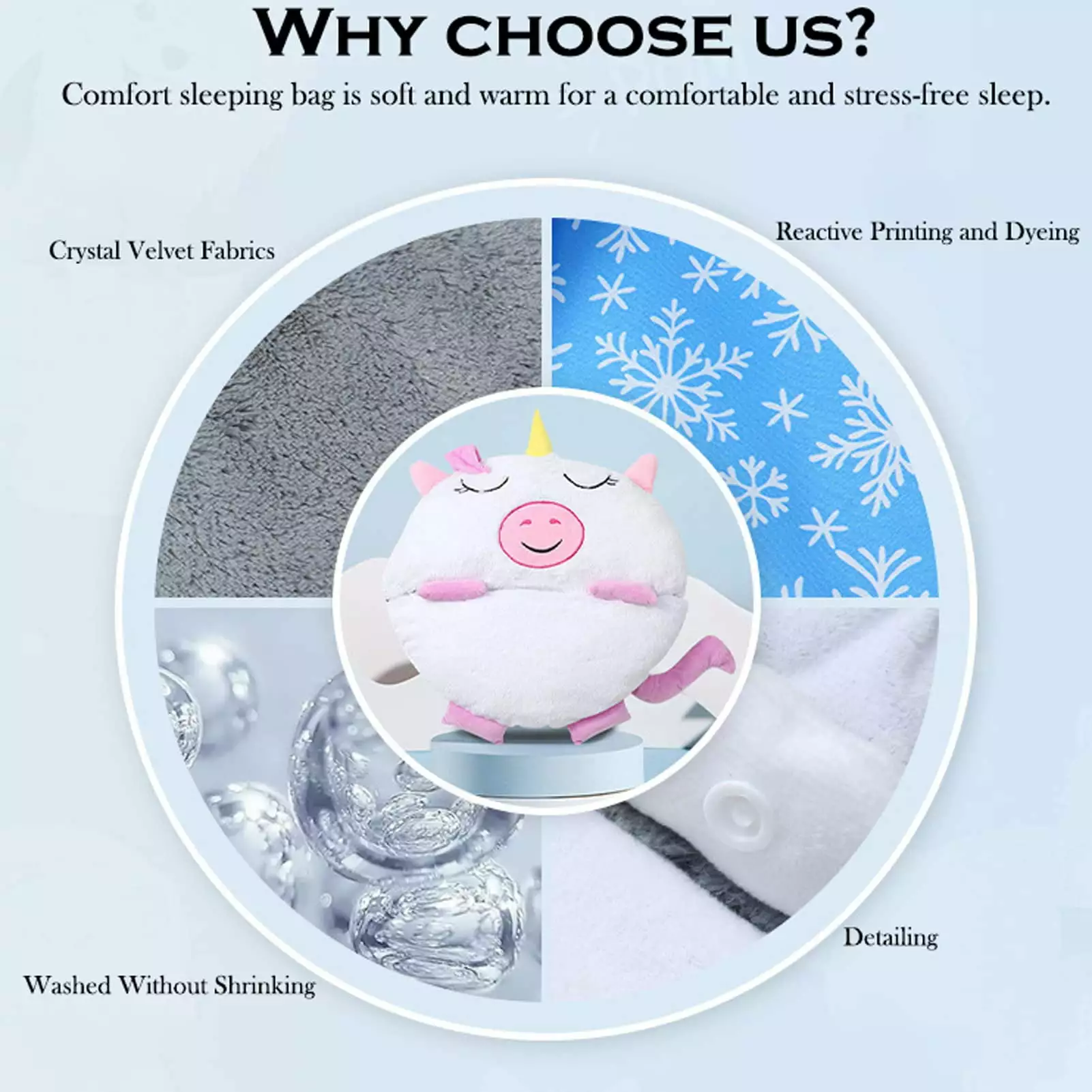 [Quilt Kick Prevention]: A sleeping bag can prevent your child from kicking the quilt. and your child won’t catch a cold. Soft and thick cotton material is very warm. Your child can stretch freely in the sleeping bag without any restraint while remaining comfortable. [Super Soft & Cozy Sleeping Bags Kids]: The animal sleeping bag are made of super soft materil. It make a comfy soft kids sleeping bags to bring your children a super snug and cozy nap. 2-in-1 kids pillow animal sleeping bag for children is not very thick. [Double Zipper Design with Lock Function]: The boys sleeping bag have 2 lock function zippers on the side. zipper stays closed allowing your child to stretch out freely in slumber bag and zipper without any movement. Top zipper help child easy to get in. get out and turn around to find a comfortable sleeping position. Bottom zipper help child take foot out in summer and take hot-water bag inside in winter. [Machine Washable]: Our toddler sleeping bag with pillow is easy to clean and maintain. Simply toss it into the wash on the delicate cycle. and hang dry. It will be clean and ready to use again in no time. [Surprise Kids Gift]: The happy kids sleeping bags 3-10 year old with pillow perfect for playing games. watching movies. staying overnight. reading books. camping or playing in the garden as a cushions or children’s sleeping bags play pillow. an ideal gift for girls or boys. The animal sleeping bag are made of super soft materil. It make a comfy soft kids sleeping bags to bring your children a super snug and cozy nap. 2-in-1 kids pillow animal sleeping bag for children is not very thick. The boys sleeping bag have 2 lock function zippers on the side. zipper stays closed allowing your child to stretch out freely in slumber bag and zipper without any movement. Top zipper help child easy to get in. get out and turn around to find a comfortable sleeping position. Bottom zipper help child take foot out in summer and take hot-water bag inside in winter. Our toddler sleeping bag with pillow is easy to clean and maintain. Simply toss it into the wash on the delicate cycle. and hang dry. It will be clean and ready to use again in no time.The happy kids sleeping bags 3-10 year old with pillow perfect for playing games. watching movies. staying overnight. reading books. camping or playing in the garden as a cushions or children’s sleeping bags play pillow. an ideal gift for girls or boys.