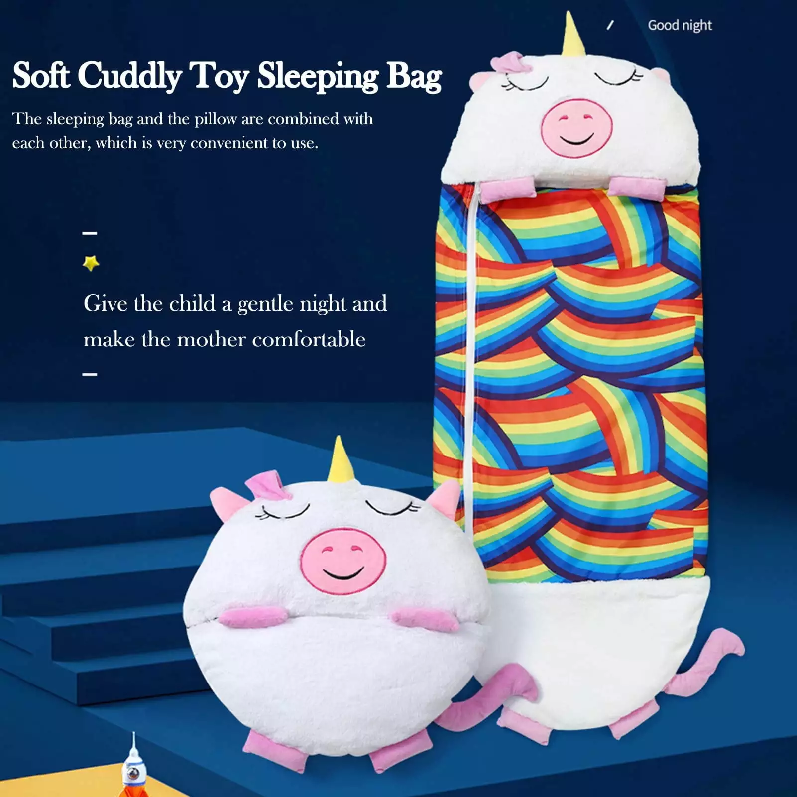 [Quilt Kick Prevention]: A sleeping bag can prevent your child from kicking the quilt. and your child won’t catch a cold. Soft and thick cotton material is very warm. Your child can stretch freely in the sleeping bag without any restraint while remaining comfortable. [Super Soft & Cozy Sleeping Bags Kids]: The animal sleeping bag are made of super soft materil. It make a comfy soft kids sleeping bags to bring your children a super snug and cozy nap. 2-in-1 kids pillow animal sleeping bag for children is not very thick. [Double Zipper Design with Lock Function]: The boys sleeping bag have 2 lock function zippers on the side. zipper stays closed allowing your child to stretch out freely in slumber bag and zipper without any movement. Top zipper help child easy to get in. get out and turn around to find a comfortable sleeping position. Bottom zipper help child take foot out in summer and take hot-water bag inside in winter. [Machine Washable]: Our toddler sleeping bag with pillow is easy to clean and maintain. Simply toss it into the wash on the delicate cycle. and hang dry. It will be clean and ready to use again in no time. [Surprise Kids Gift]: The happy kids sleeping bags 3-10 year old with pillow perfect for playing games. watching movies. staying overnight. reading books. camping or playing in the garden as a cushions or children’s sleeping bags play pillow. an ideal gift for girls or boys. The animal sleeping bag are made of super soft materil. It make a comfy soft kids sleeping bags to bring your children a super snug and cozy nap. 2-in-1 kids pillow animal sleeping bag for children is not very thick. The boys sleeping bag have 2 lock function zippers on the side. zipper stays closed allowing your child to stretch out freely in slumber bag and zipper without any movement. Top zipper help child easy to get in. get out and turn around to find a comfortable sleeping position. Bottom zipper help child take foot out in summer and take hot-water bag inside in winter. Our toddler sleeping bag with pillow is easy to clean and maintain. Simply toss it into the wash on the delicate cycle. and hang dry. It will be clean and ready to use again in no time.The happy kids sleeping bags 3-10 year old with pillow perfect for playing games. watching movies. staying overnight. reading books. camping or playing in the garden as a cushions or children’s sleeping bags play pillow. an ideal gift for girls or boys.