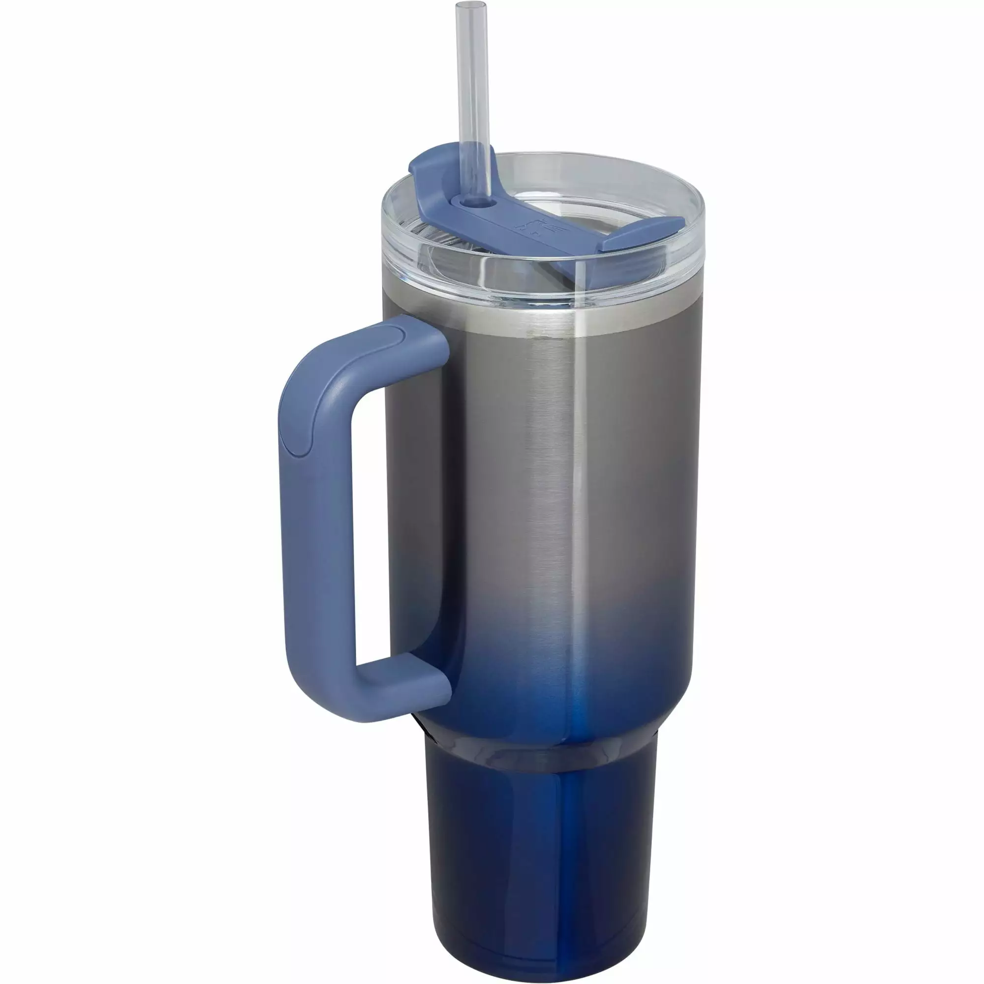 Constructed of recycled stainless steel for sustainable sipping. the Stanley® 40 oz. Quencher H2.0 offers maximum hydration with fewer refills. Commuting. studio workouts. day trips or your front porch??you’ll want this tumbler by your side. Thanks to Stanley’s vacuum insulation. your water will stay ice-cold. hour after hour. The advanced FlowState? lid features a rotating cover with three positions: a straw opening designed to resist splashes while holding the reusable straw in place. a drink opening. and a full-cover top. The ergonomic handle includes comfort-grip inserts for easy carrying. and the narrow base fits just about any car cup holder.