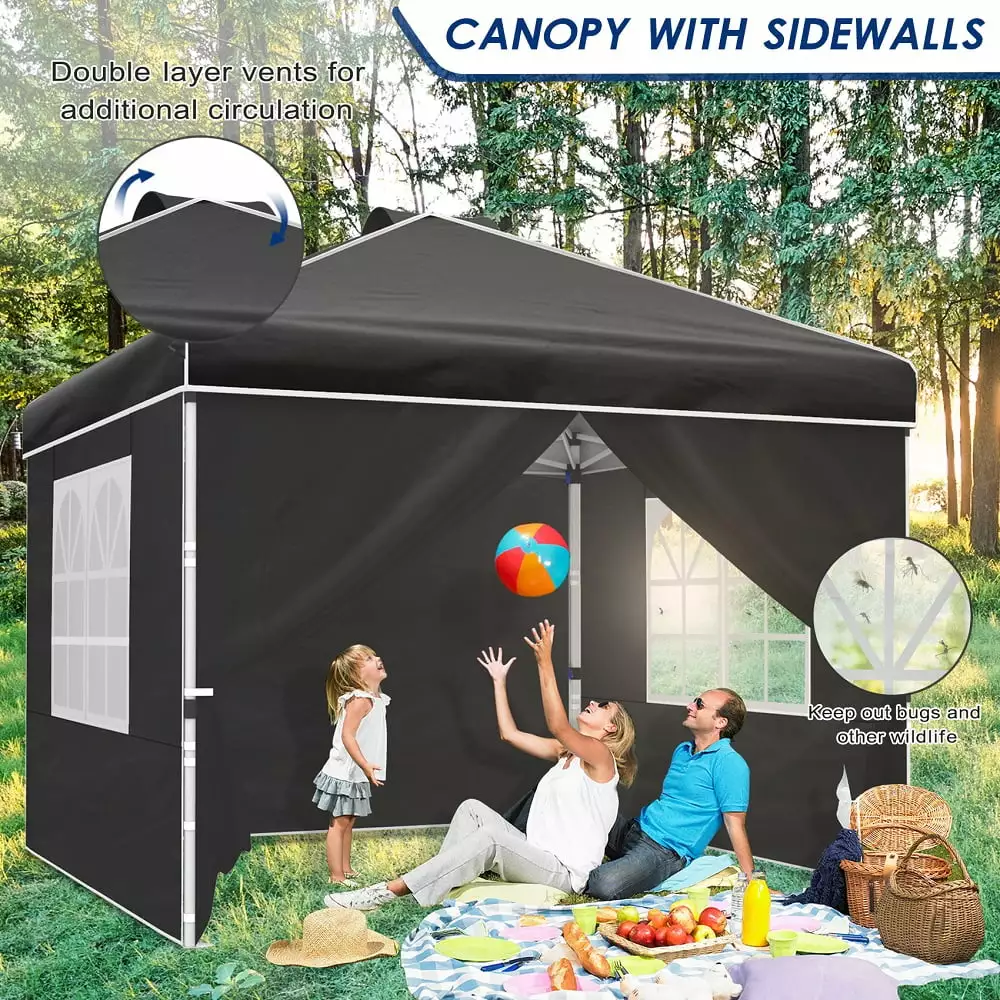- ??Removable sidewalls with windows??A total of 4 removable sidewalls can be set up any way you want. Each wall has a clear window to ensure maximum lighting in the tent.