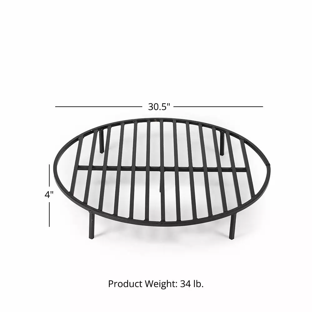 - DIMENSIONS: This 34 LB. round firepit grate is 4 tall x 30.5 diameter. The tines are 0.5 thick.