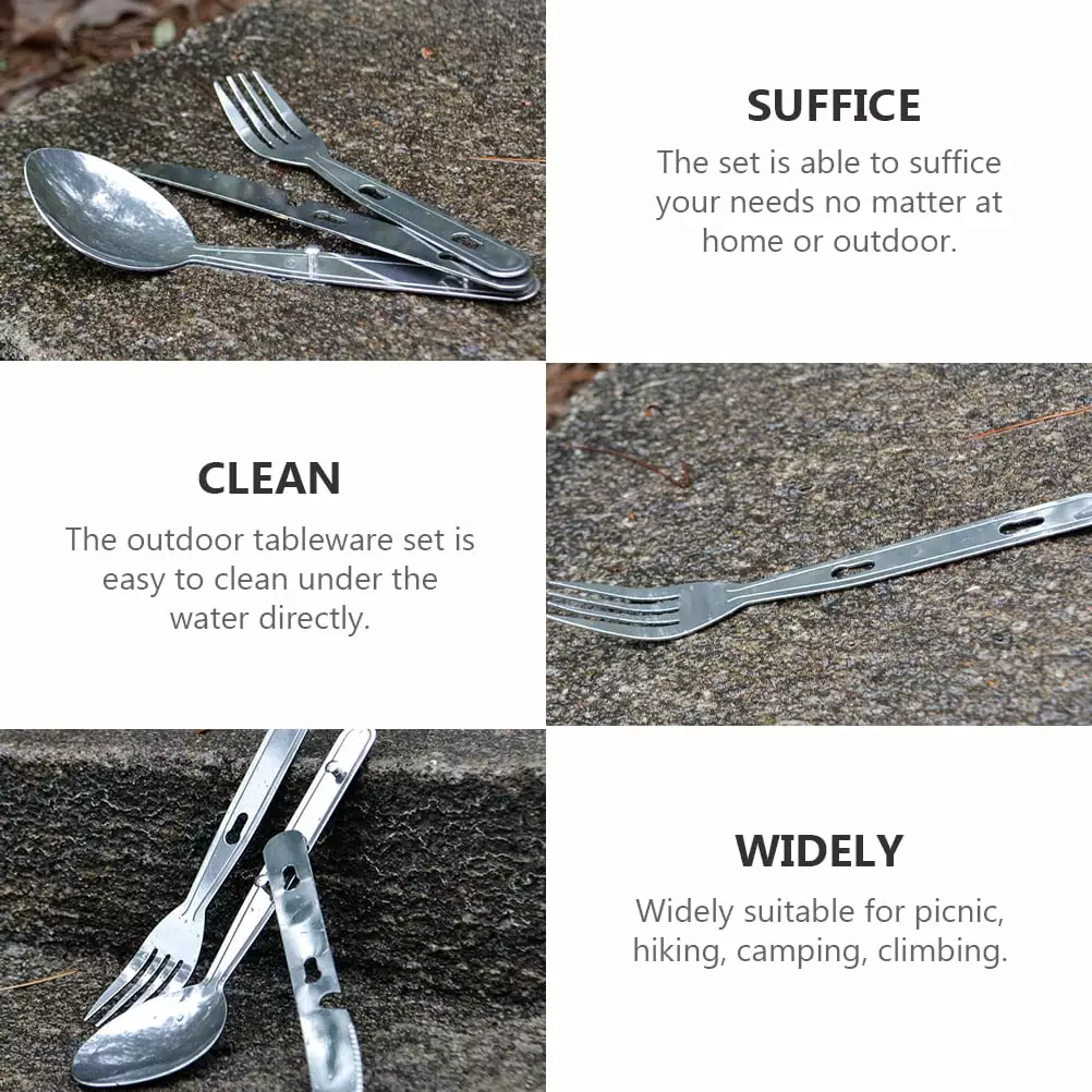 This set of outdoor tableware is made of grade material. which is long-lasting and rust free. These utensils are easy to clean and can stand years of use. Very suitable for camping. family picnic. travel. hiking. BBQ or other outdoor activities.