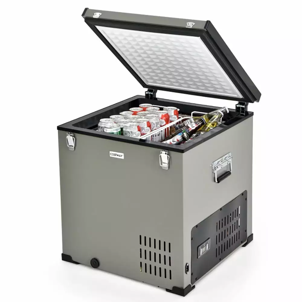 YYAo Portable Freezer. Car Refrigerator. 68 Quart Portable Car Refrigerator with DC and AC Adapter-Gray