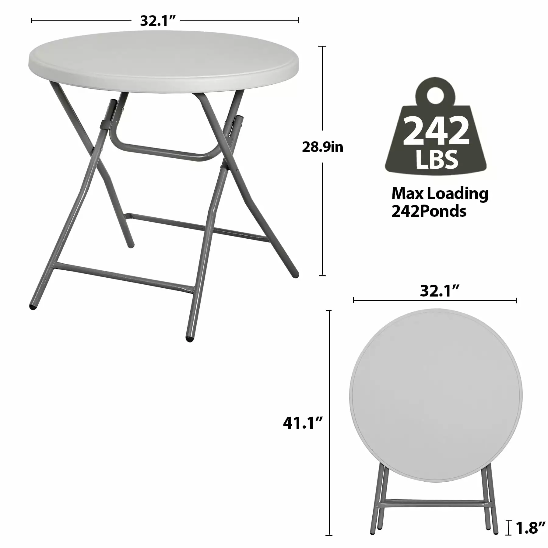 ZENSTYLE 32 Round Foldable Table Portable Plastic Dining Table. White