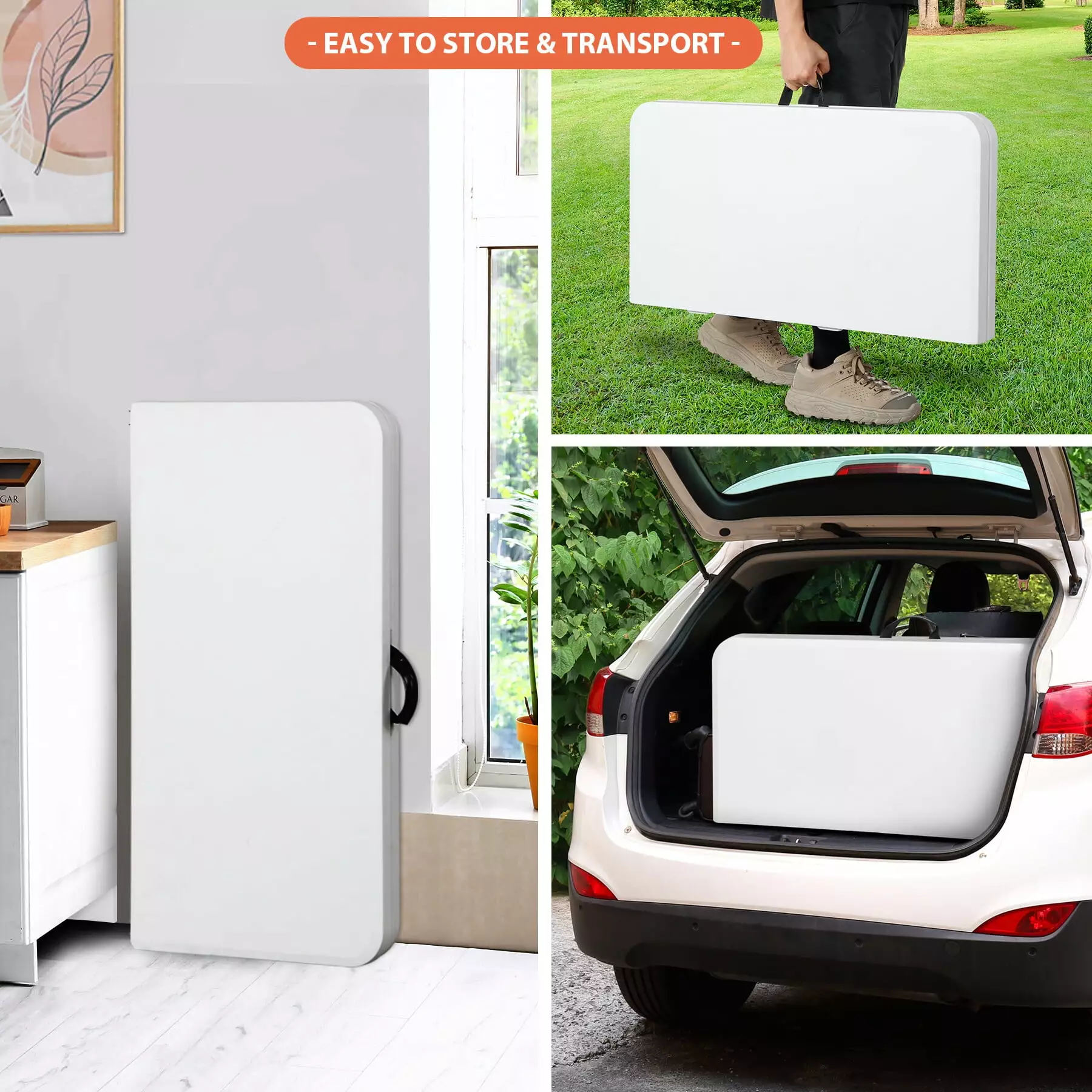 Thanks for choosing our ZENSTYLE products. This folding table is ideal for both home and office and is durably crafted for either indoor or outdoor use. Powder-coated steel legs ensure stability in place during every event. The foldable design includes a side lock and handles. making it easy to take on the go or store away in a compact space when not in use. The simple appearance makes it match well with any furniture style which can be placed in your bedroom. living room. office. and children’s room or for outdoor picnics. etc.
