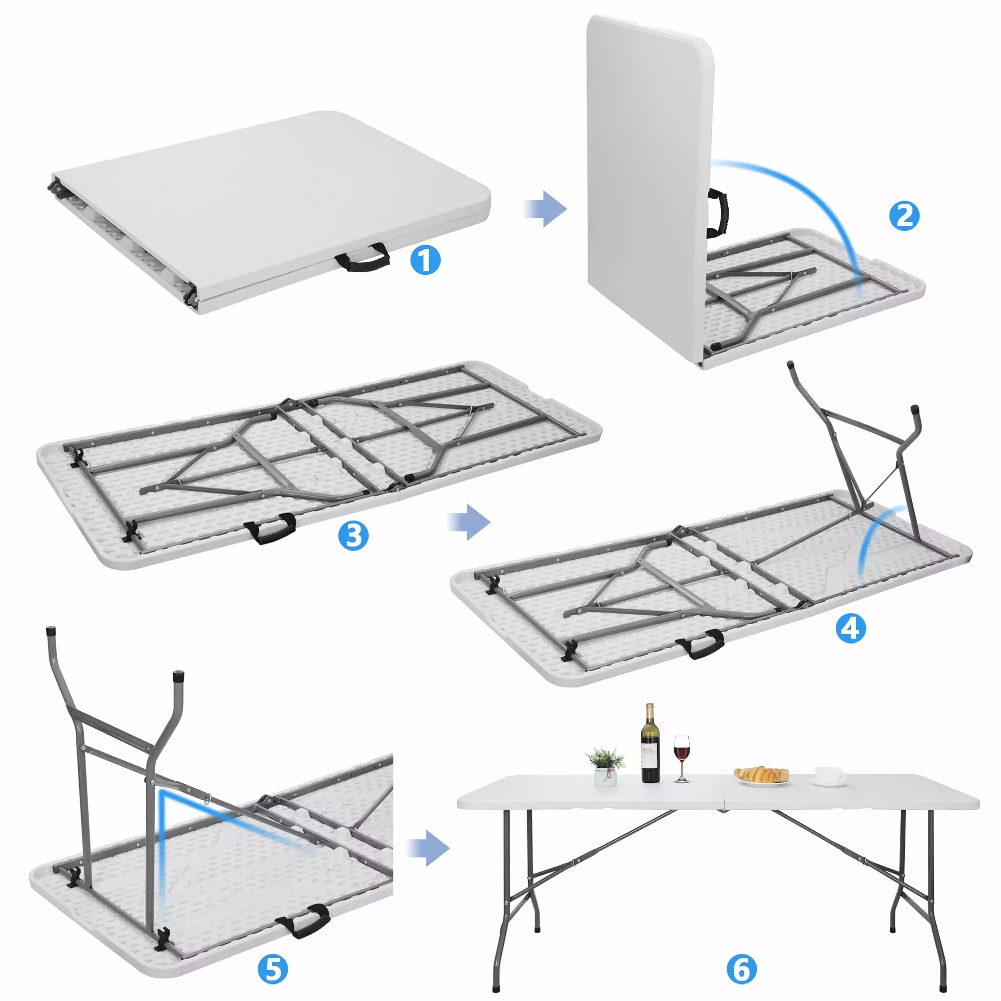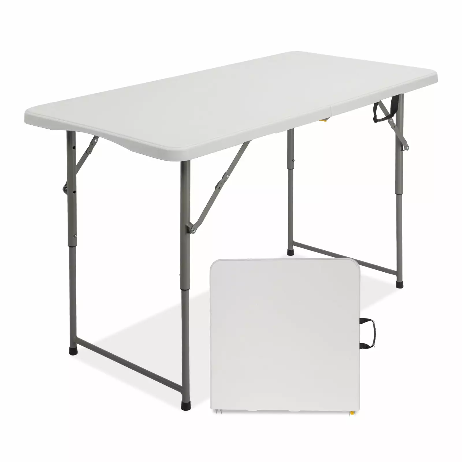 - ??Sturdy & Stable??- Powder-coated steel frame and HDPE material table top provides this table superior strength and durability. Locking mechanism and non-slip rubber feet help to keep the table in place.