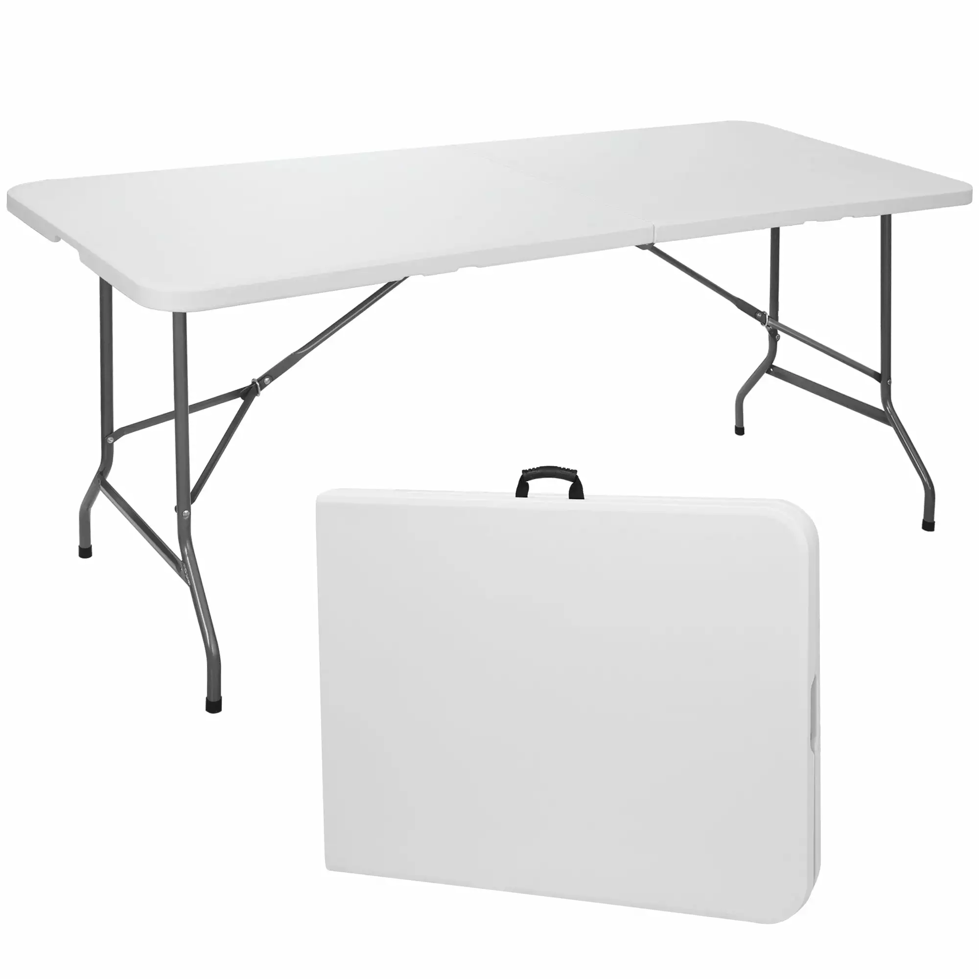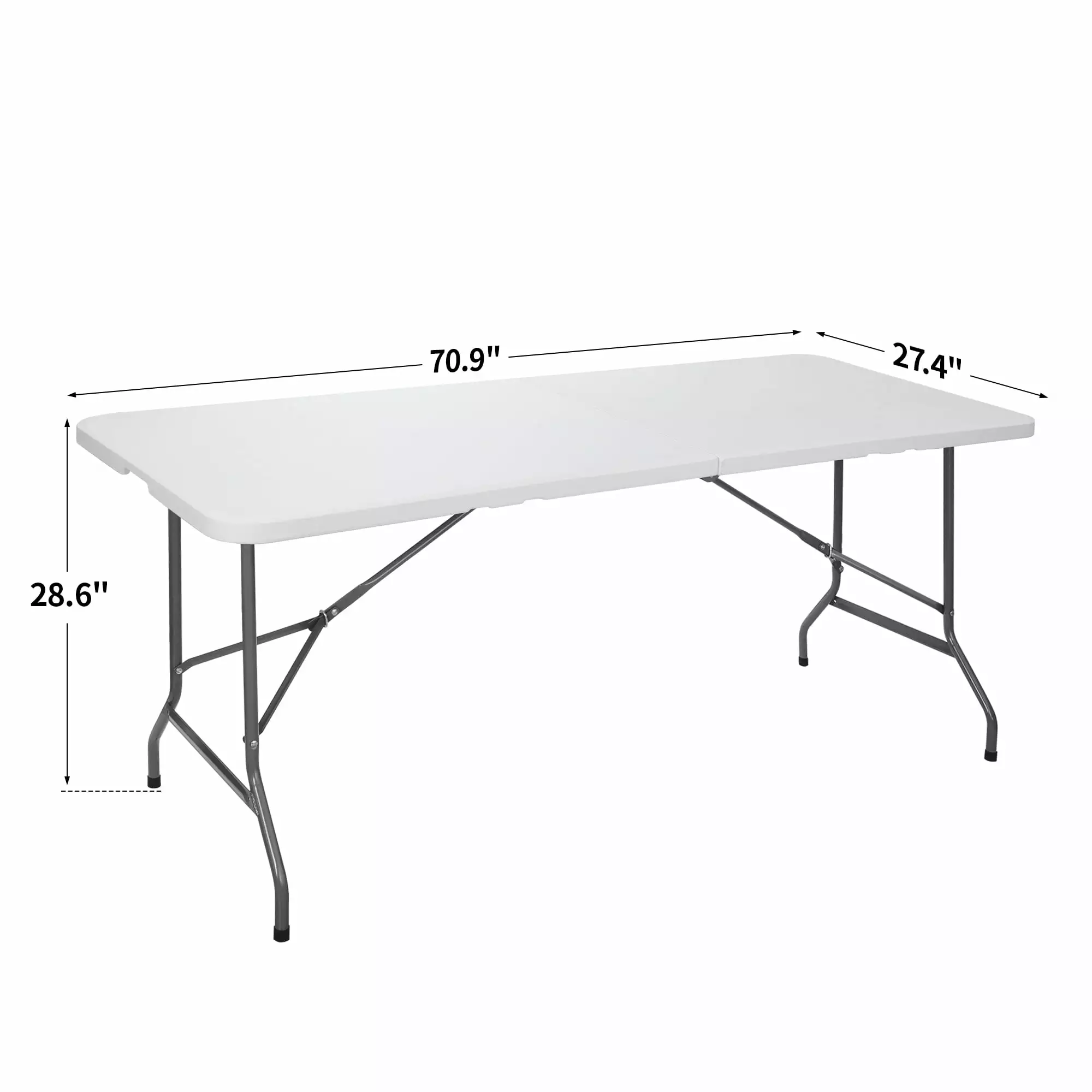ZENSTYLE 6ft Rectangular Folding Table Plastic Picnic Camping Desk. Max 220lbs White