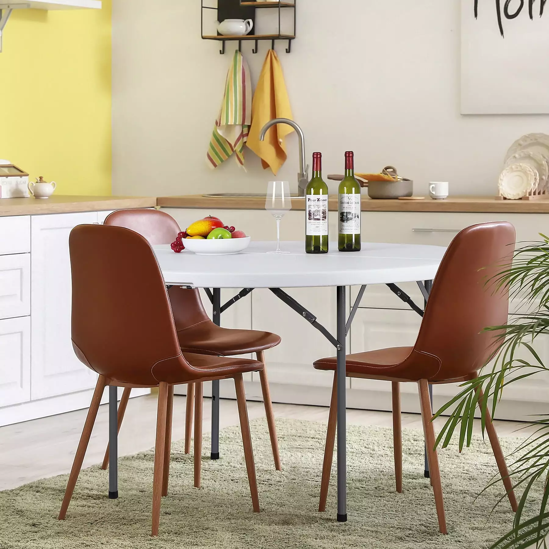 Foldable: This round table could be folded to a half-round shape which increases its convenience.