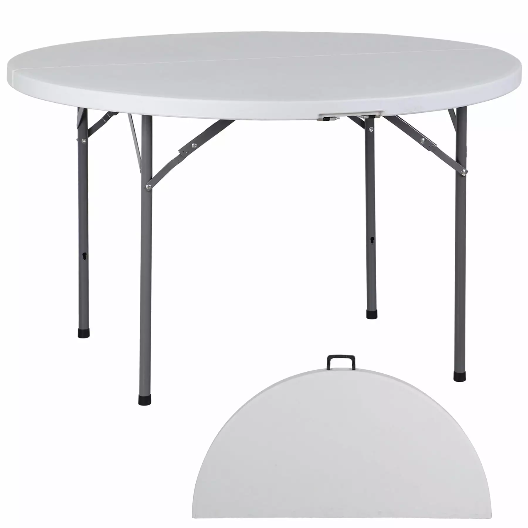 Thanks for choosing our ZENY products. This round table could be folded to a half-round shape which increases its convenience. It’s easier to carry from here to there by its 32lbs lightweight body compared with traditional furniture tables. This table is made of an HDPE top and solid metal frame which offers durability and strength. Adapting to all kinds of gatherings. outings. meetings. dining. and banquet. you can fastly deploy this item to meet your demands. Item comes with folding status. you can easily unfold it to use. If you have any questions regarding our product quality or any problem during use. please do not hesitate to contact us.