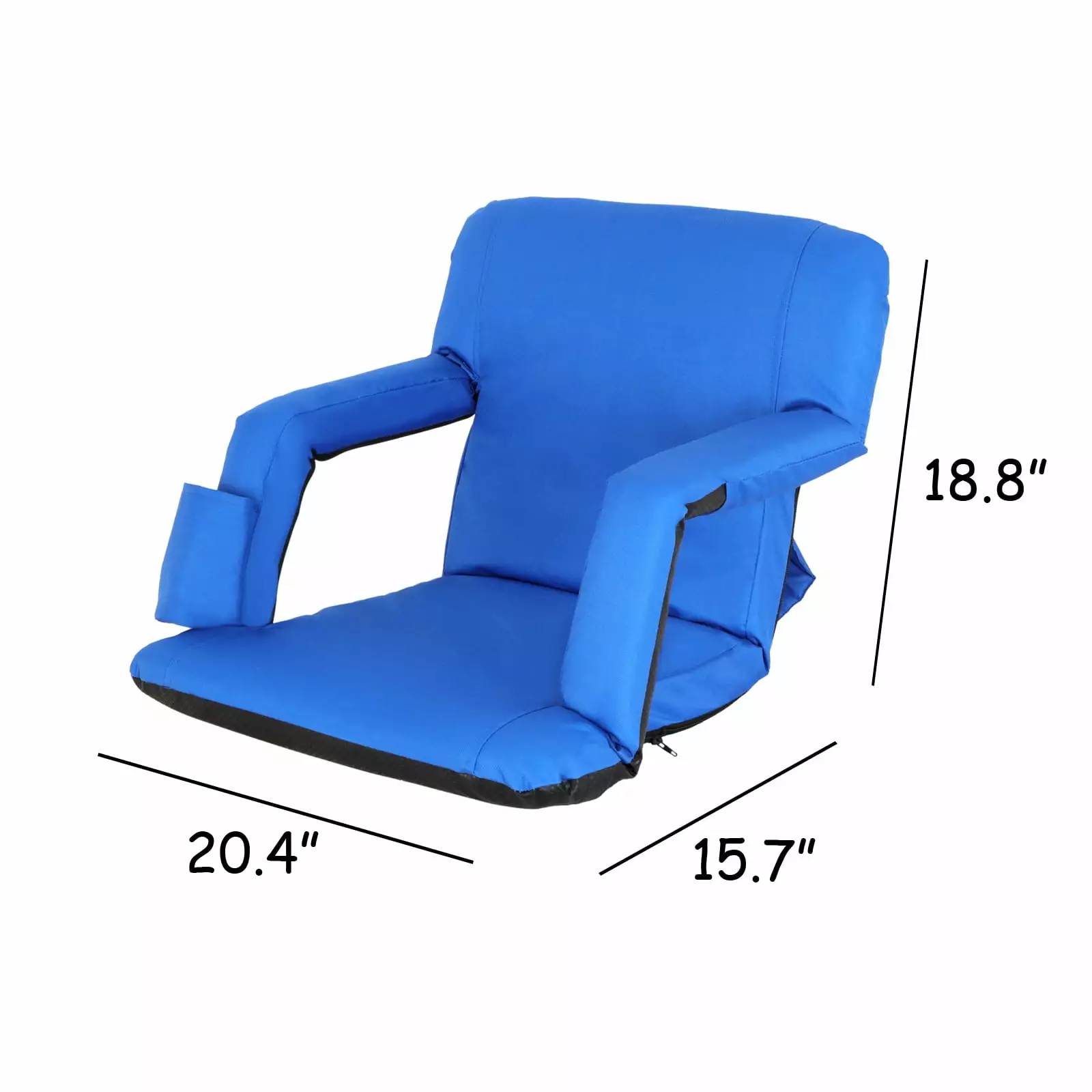 - This cushioned bleacher chair can be easily reclined to 5 positions. and boasts thick padded armrests so you can lay back and really enjoy the game with all the space you need.
