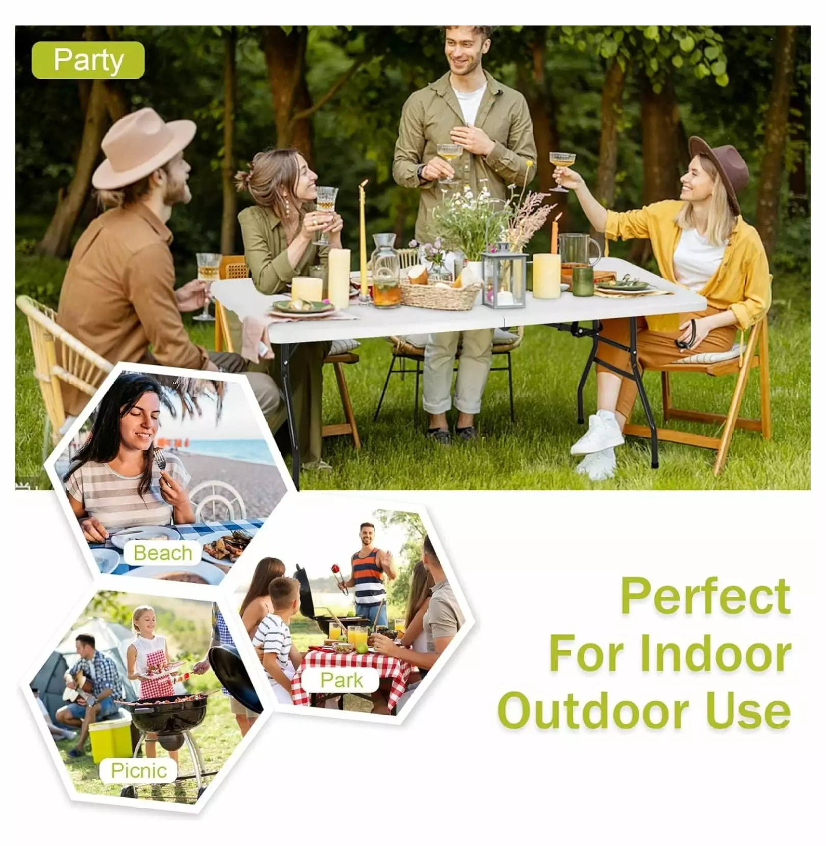 - ??Multi-purpose Table??The folding table is perfect as an outdoor picnic or birthday party table. catering folding table. barbecue portable table. or as an indoor kitchen table. display plastic folding table. or even as a work station for home offices and other indoor and outdoor events.
