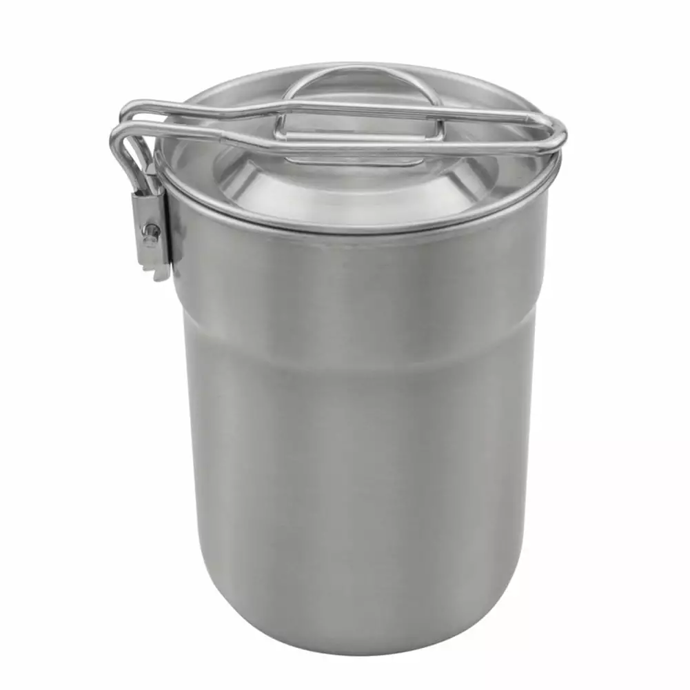 When the cook set is fitted together (with the lid on the pot) for travel and storage. it contains room to carry a stove. matches. seasoning. salt. pepper. a sponge and many other things to keep your overall space consumption to a minimum.