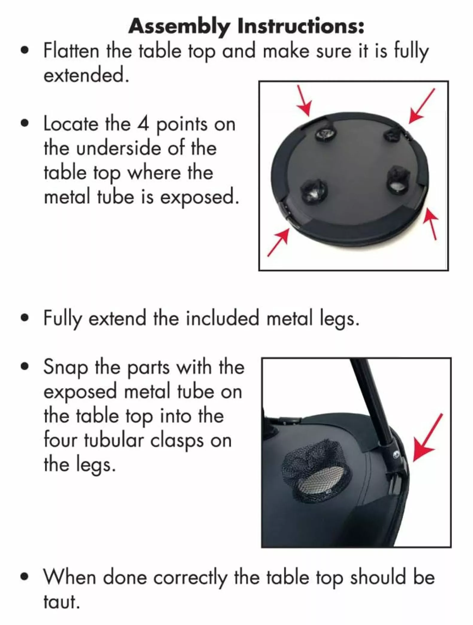 - This small patio table is compact. sturdy and light. Everything fits into an easy to carry as a shoulder bag. It will complement the folding beach chair. A must have for any outdoor event.