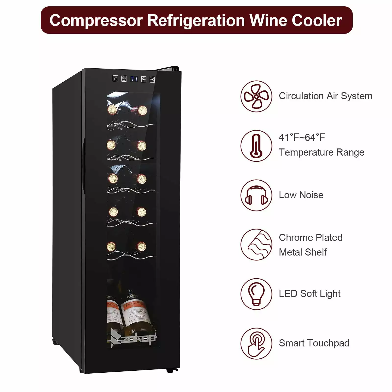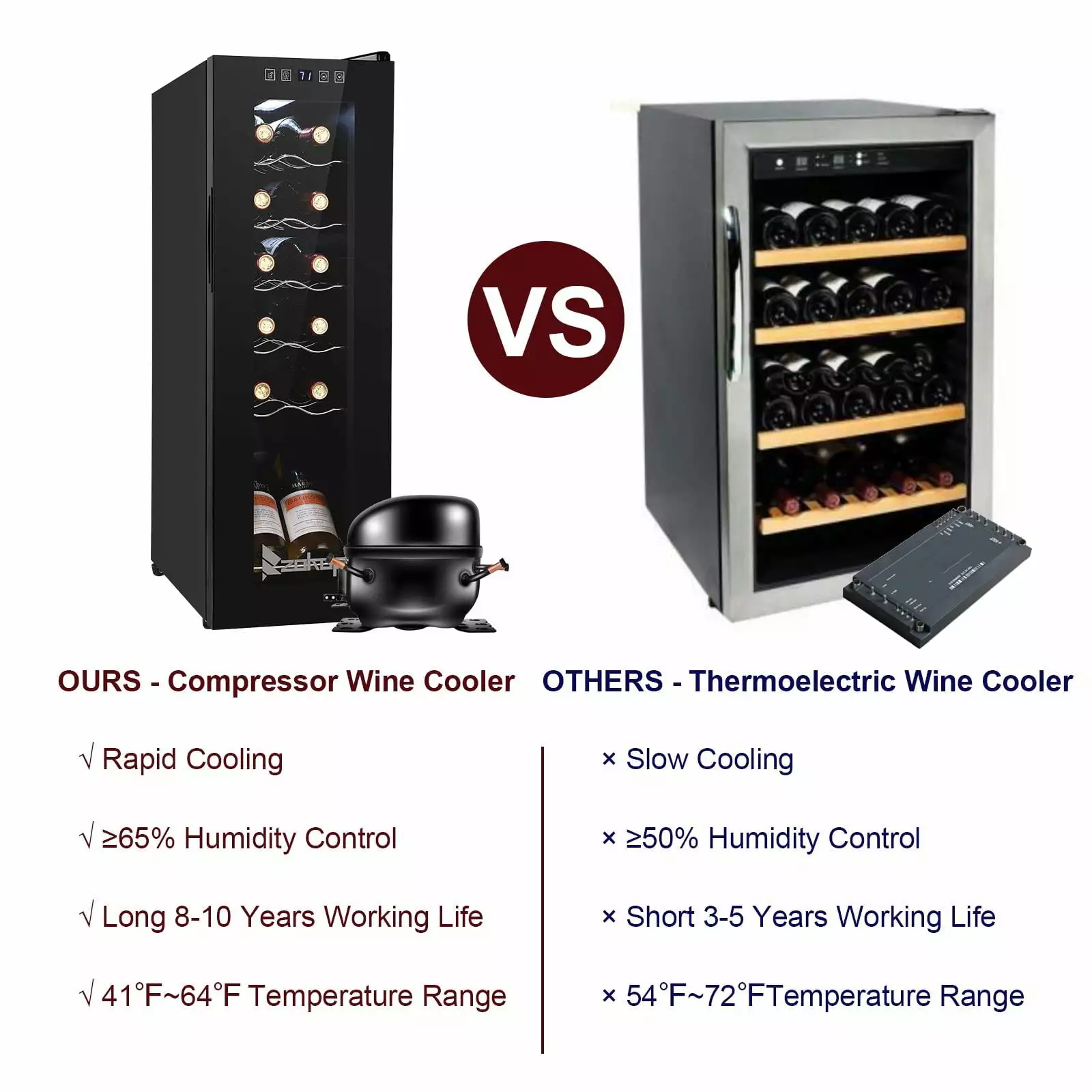 1. Keep wine cool: Heat is enemy number one for wine. wine coolers’ compressor technology ensures temperature is not affected by outside heat sources. It enables you to store your wine in optimal conditions for long-term aging. Working temperature range is 41???F- 64???F. and allows you to customize the temp (55???F is often cited as close to perfect)