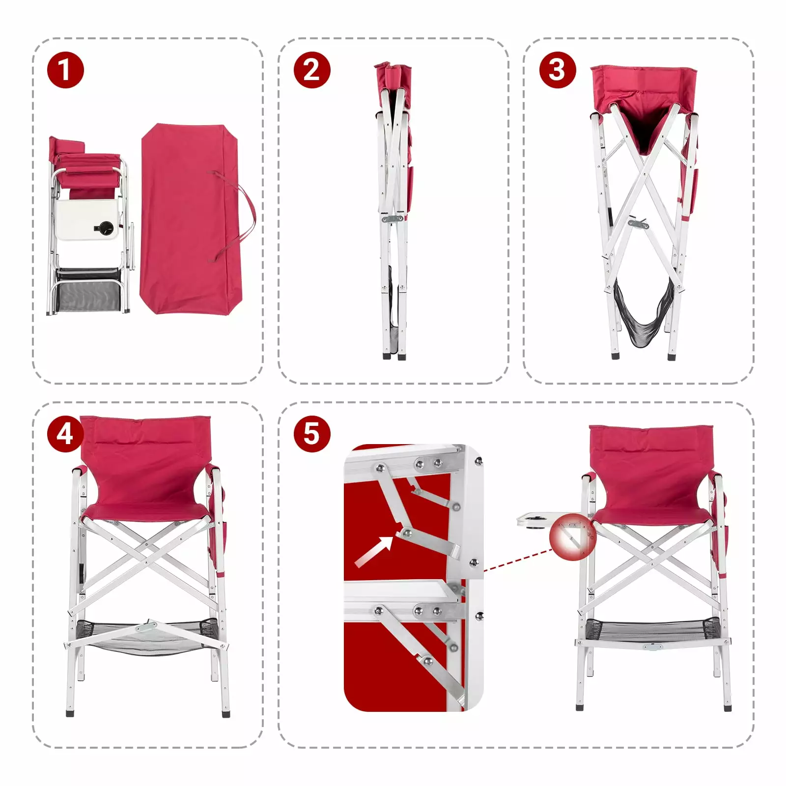 Zimtown Director Chair Folding Oversize Padded Seat Camping Chair with Side Table Red
