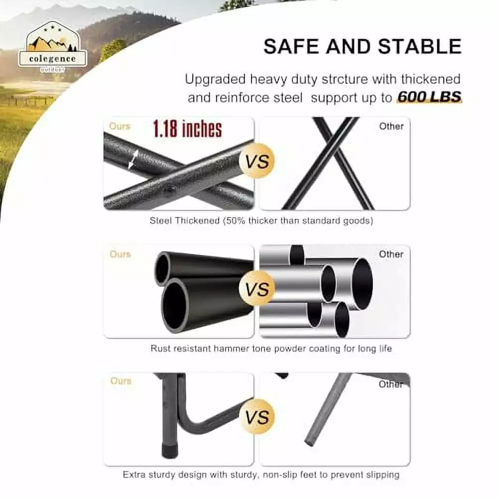 Unique eight-point ground contacts and four side bars ensure stability; pop-out side table with cup holder and dual side pockets storage Bag for small item storage