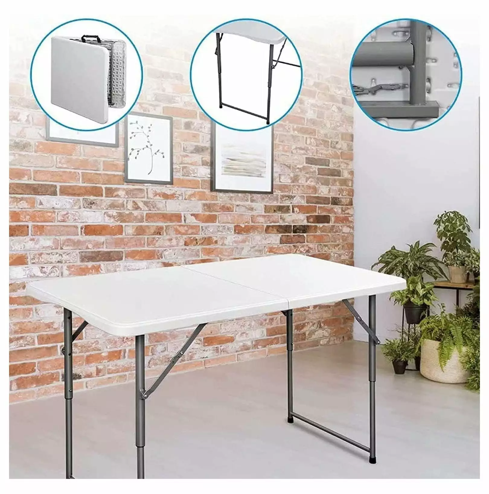 - The folding table is made of high-density polyethylene (HDPE). The surface is waterproof. scratch. and impact resistant.